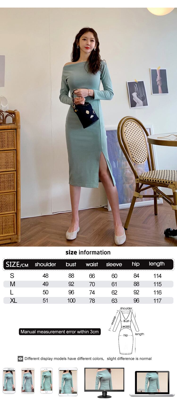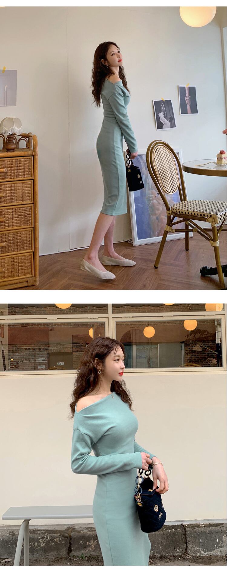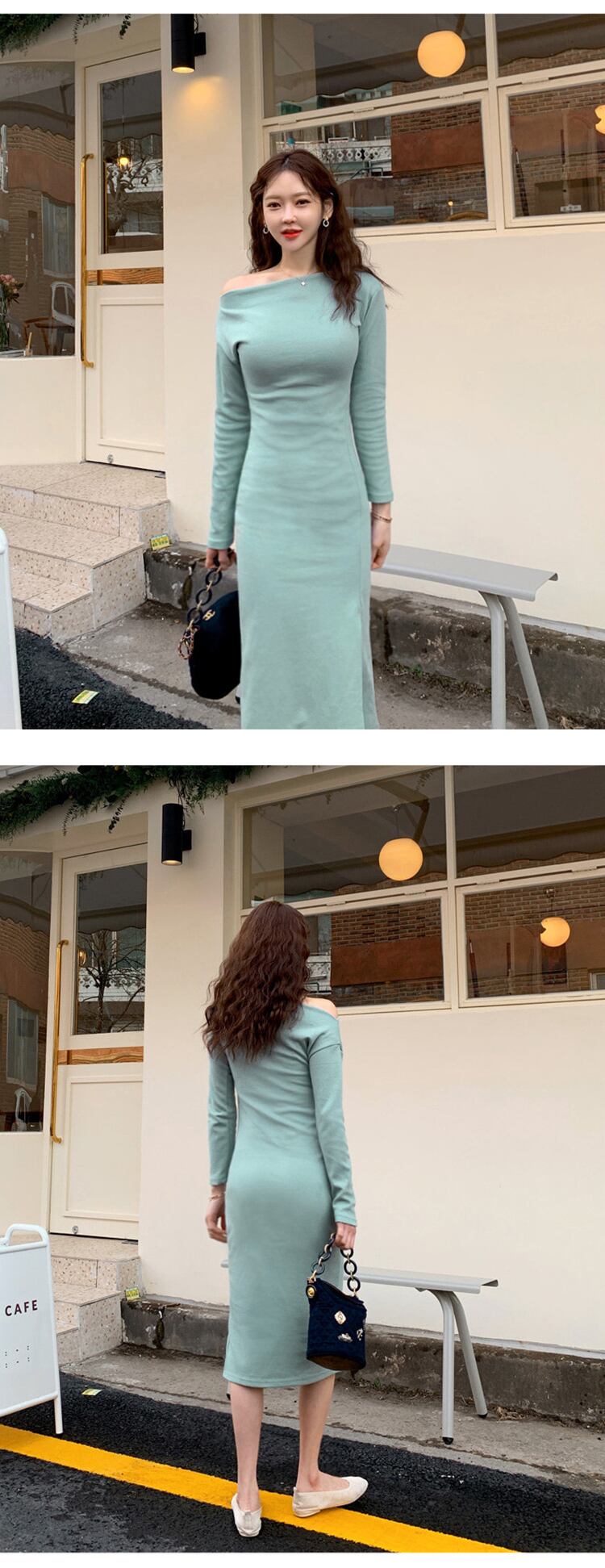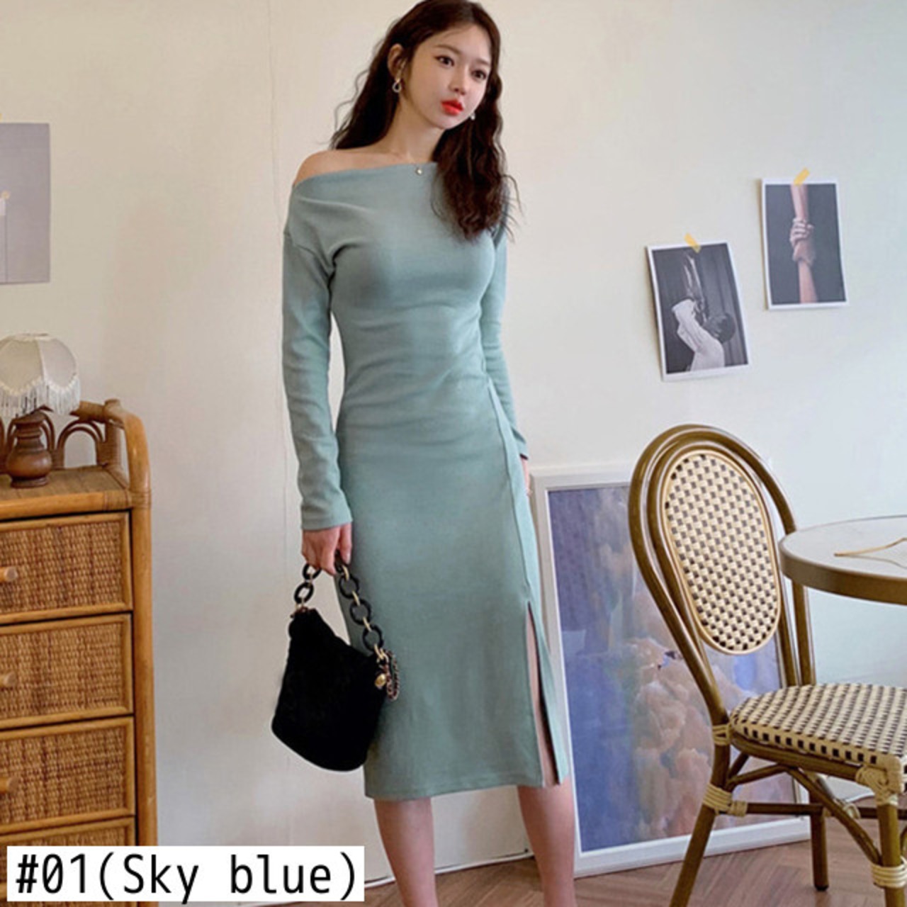 新着ファッションオフショルダー無地マルドレスエレガントヴィンテージワークスタイル気質ベーシックペンシルドレス ソリッドカラー ビンテージ