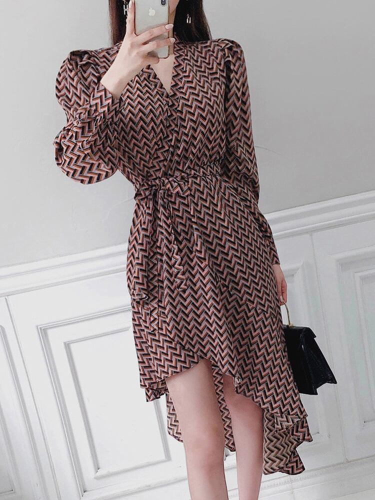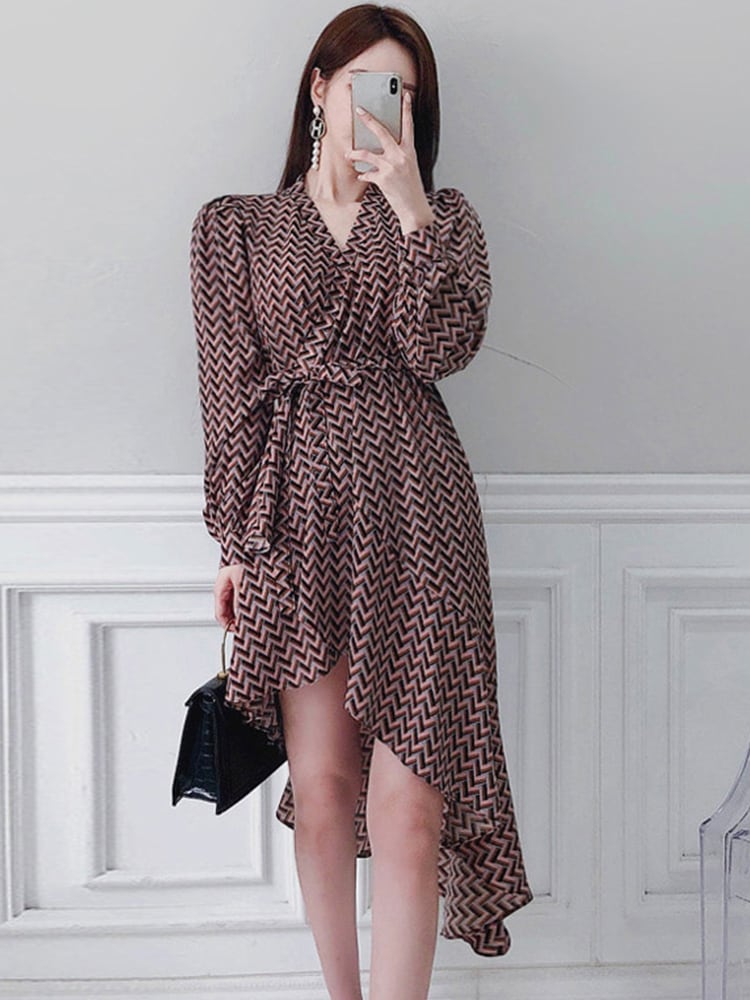 秋 春 ファッション 個性 マル ドレス 気質 OL ヴィンテージ 上品 ストライプ キュート アシンメトリー ドレス 大人ガーリー スウィート カジュアル エレガント スプリング 春物 オータム 秋物 ビンテージ