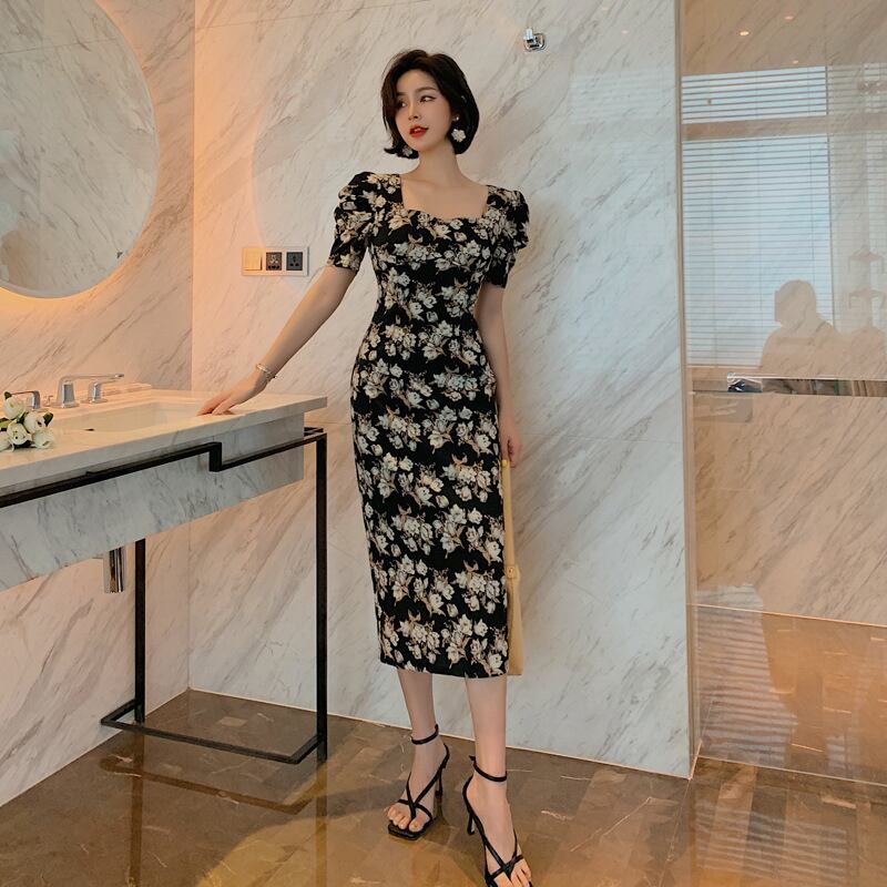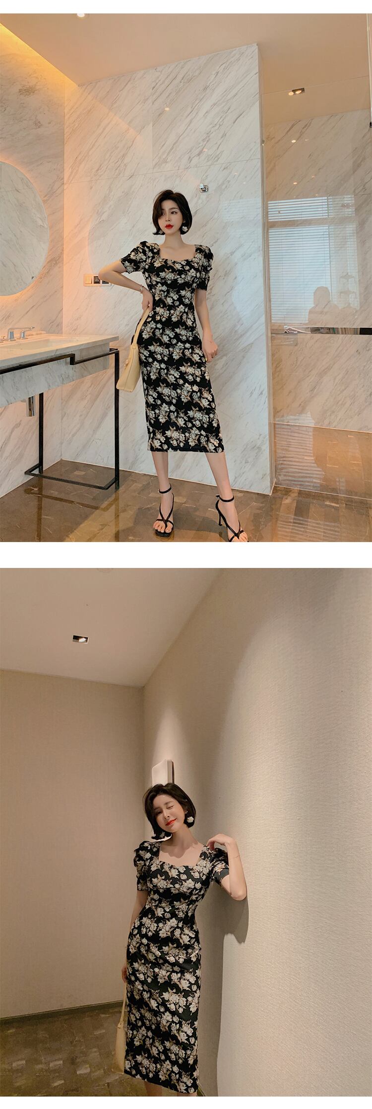 新着ファッションプリントペンシルドレスエレガント夏半袖シンプル気質オフィスレディ赤ミディボディコンドレス ショート レッド ハーフスリーブ サマー 夏物 会社 学校 通勤や通学にも