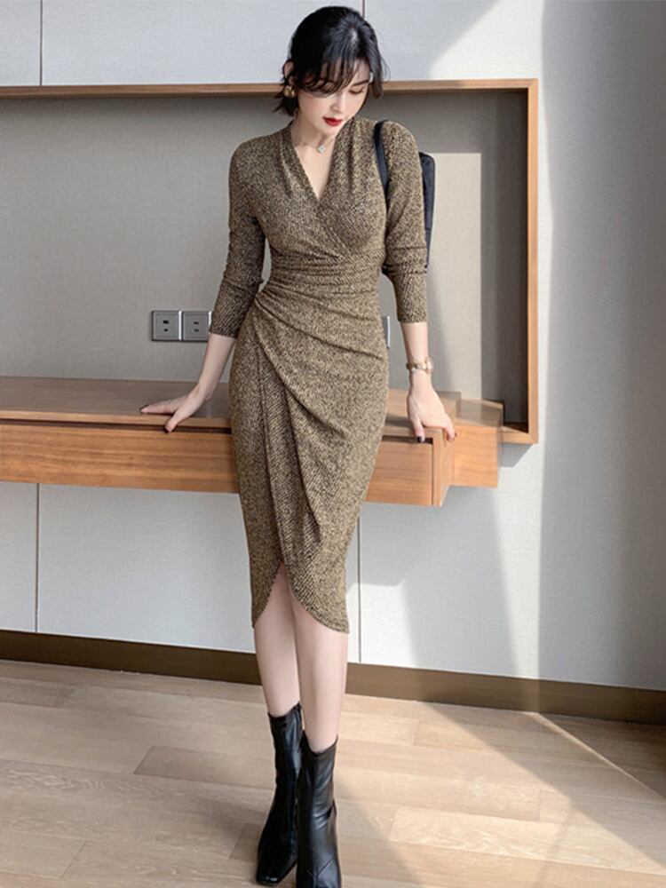 新着オフィスレディ生き抜くセクシーマルドレスヴィンテージパーティーエレガントシャイニング弾む非対称ドレス ビンテージ 会社 学校 通勤や通学にも