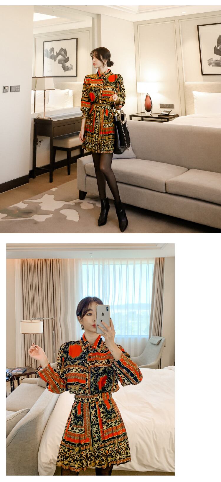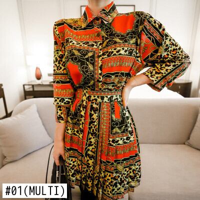 到着気質プリントルーズシャツcomtableヴィンテージミニaラインスカートファッショントレンドかわいい春セット 大人ガーリー スウィート キュート カジュアル スプリング 春物 ビンテージ