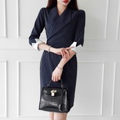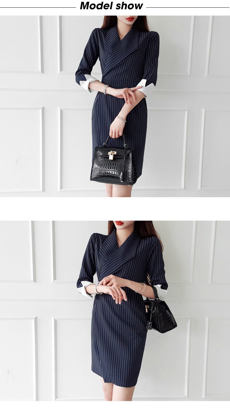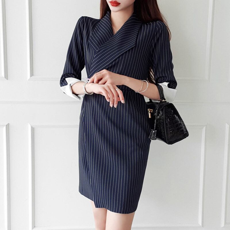 新着ファッションワークスタイルストライプスリムドレスエレガント夏マルオフィスレディヴィンテージ気質ペンシルドレス サマー 夏物 ビンテージ 会社 学校 通勤や通学にも