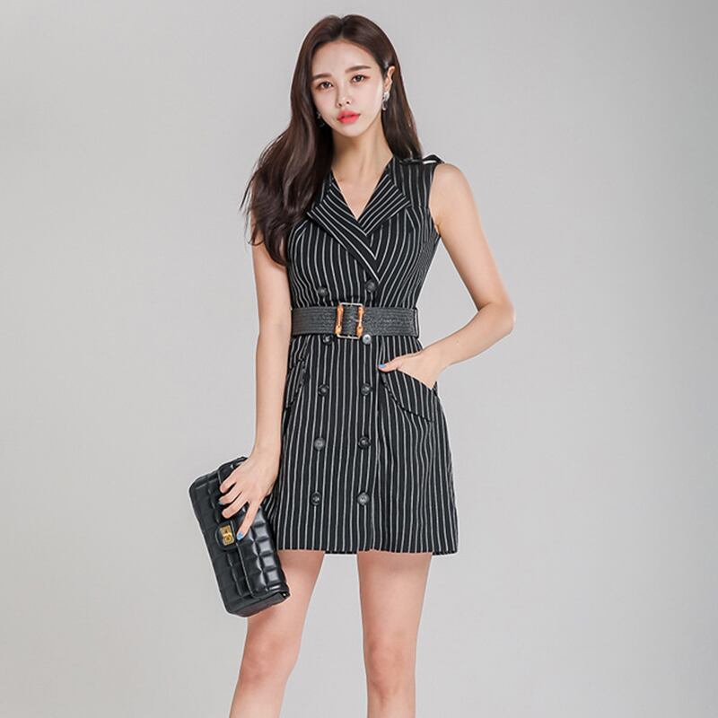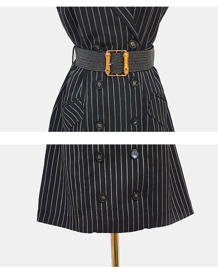 新着ファッションヴィンテージドレスエレガント夏ノースリーブ気質 OL ワークスタイルストライプスリム a ラインパーティードレス サマー 夏物 Aライン ビンテージ