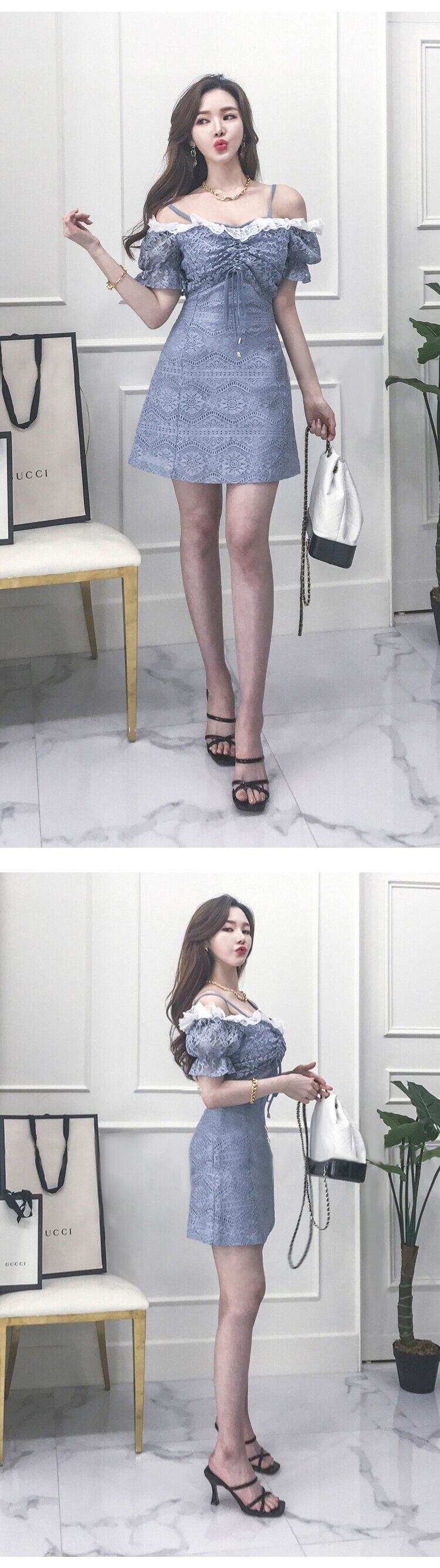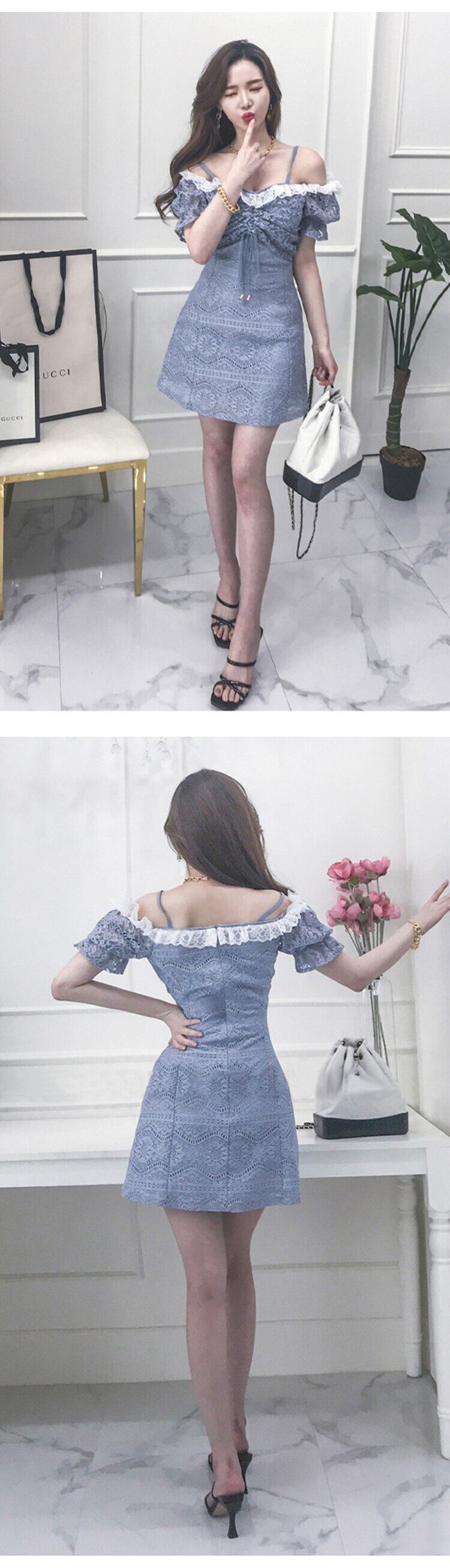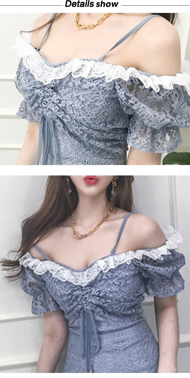 新着ファッションレースドレスエレガント夏セクシーストラップ半袖気質オフィスレディブルースリムaラインミニドレス ショート ハーフスリーブ サマー 夏物 会社 学校 通勤や通学にも