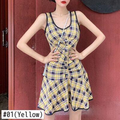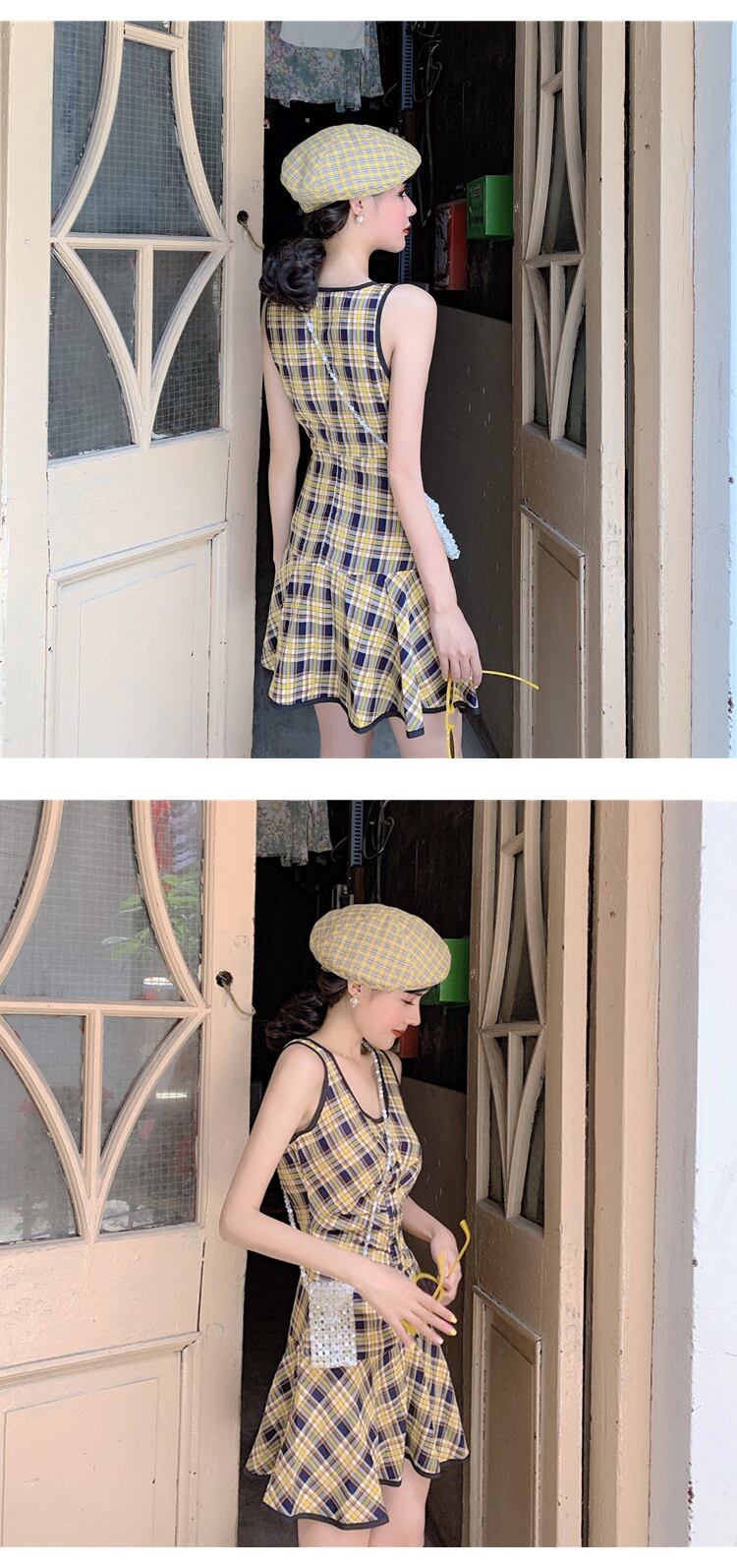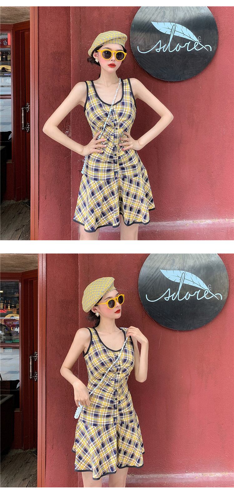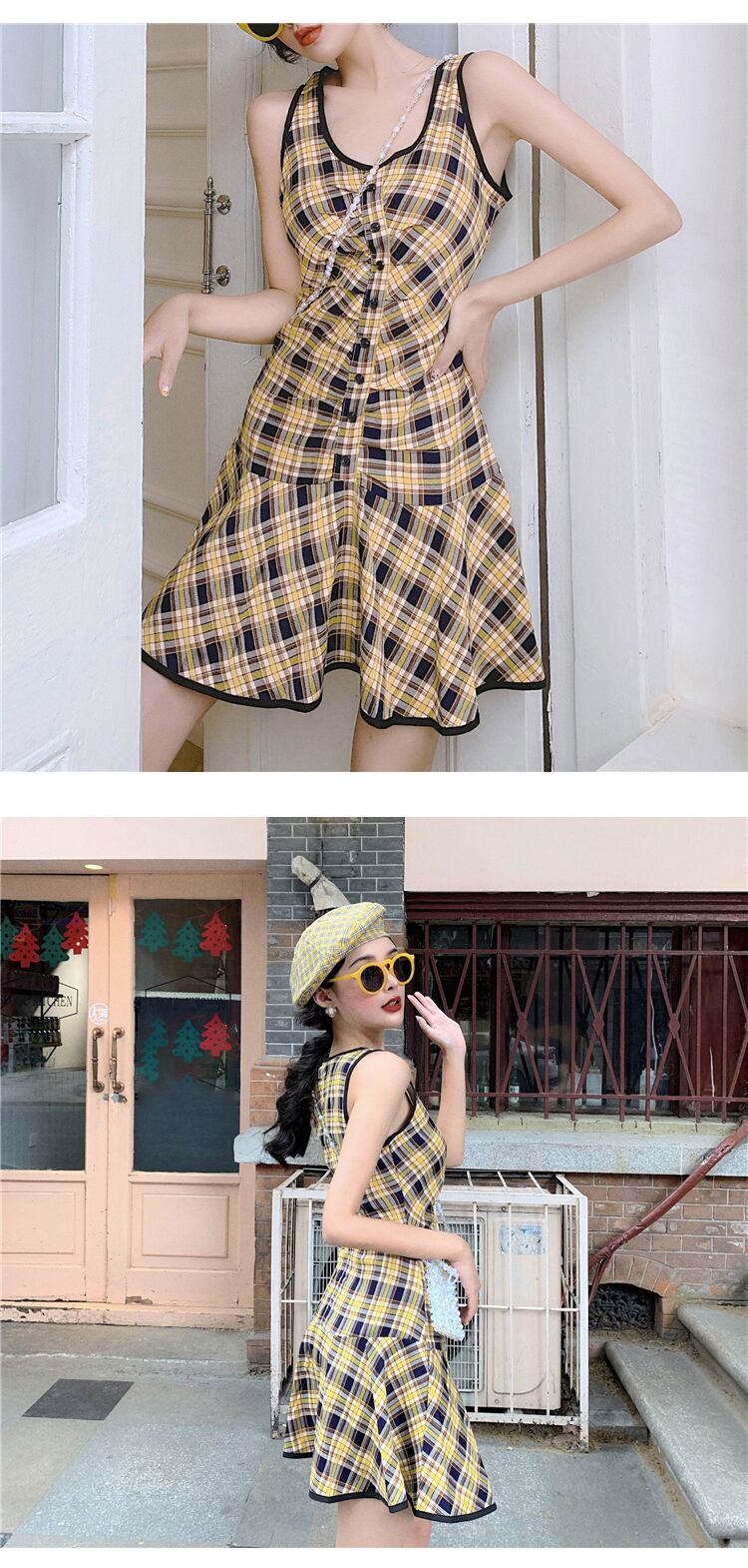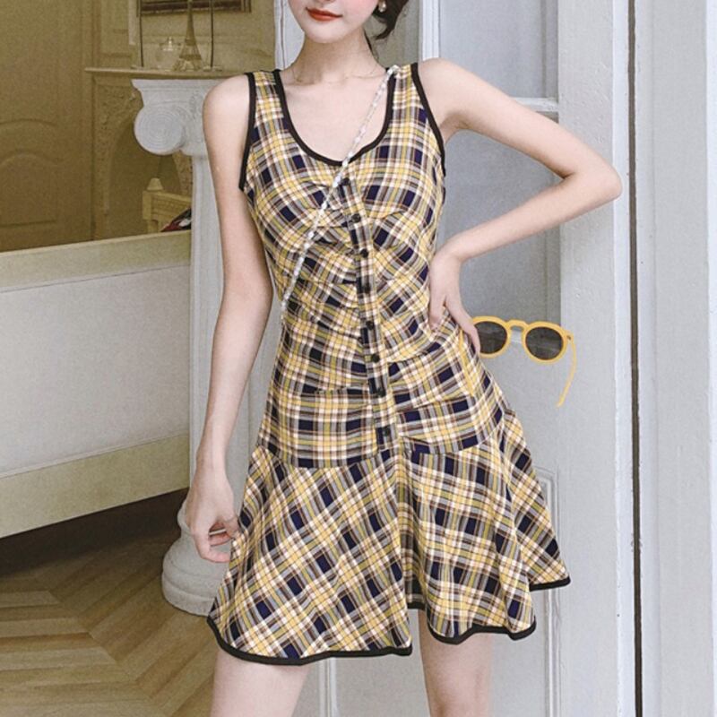 新着ファッション プレッピー スタイル ドレスエレガント夏セクシータンク チェック柄カジュアル気質シンプル スリム マーメイド ドレス サマー 夏物