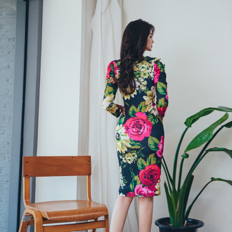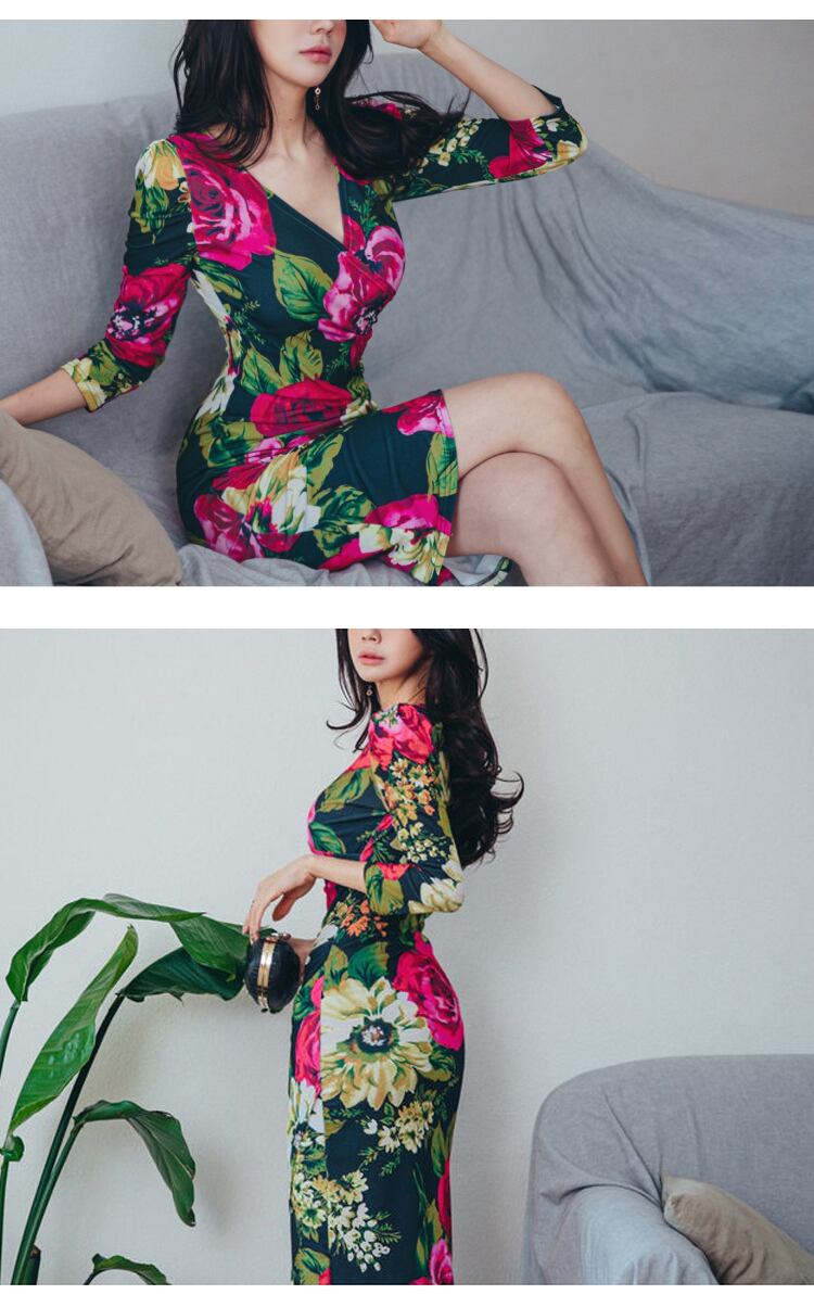 新着ファッションビーチドレスエレガント秋 v ネック長袖プリント気質オフィスレディシンプル非対称ドレス ロング オータム 秋物 Vネック 会社 学校 通勤や通学にも