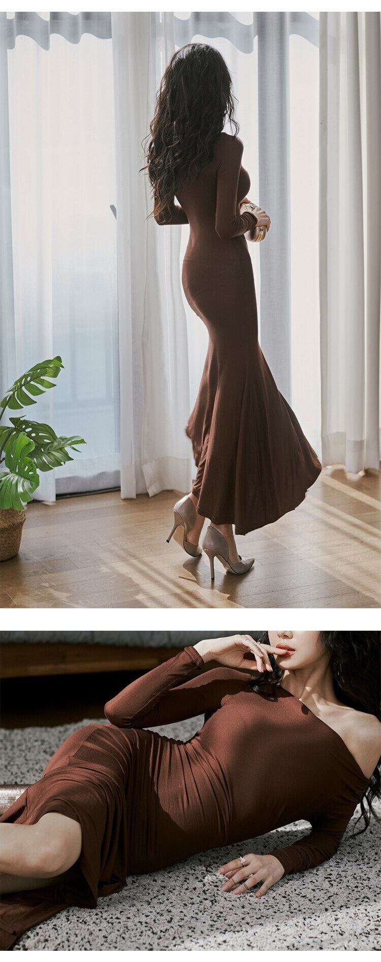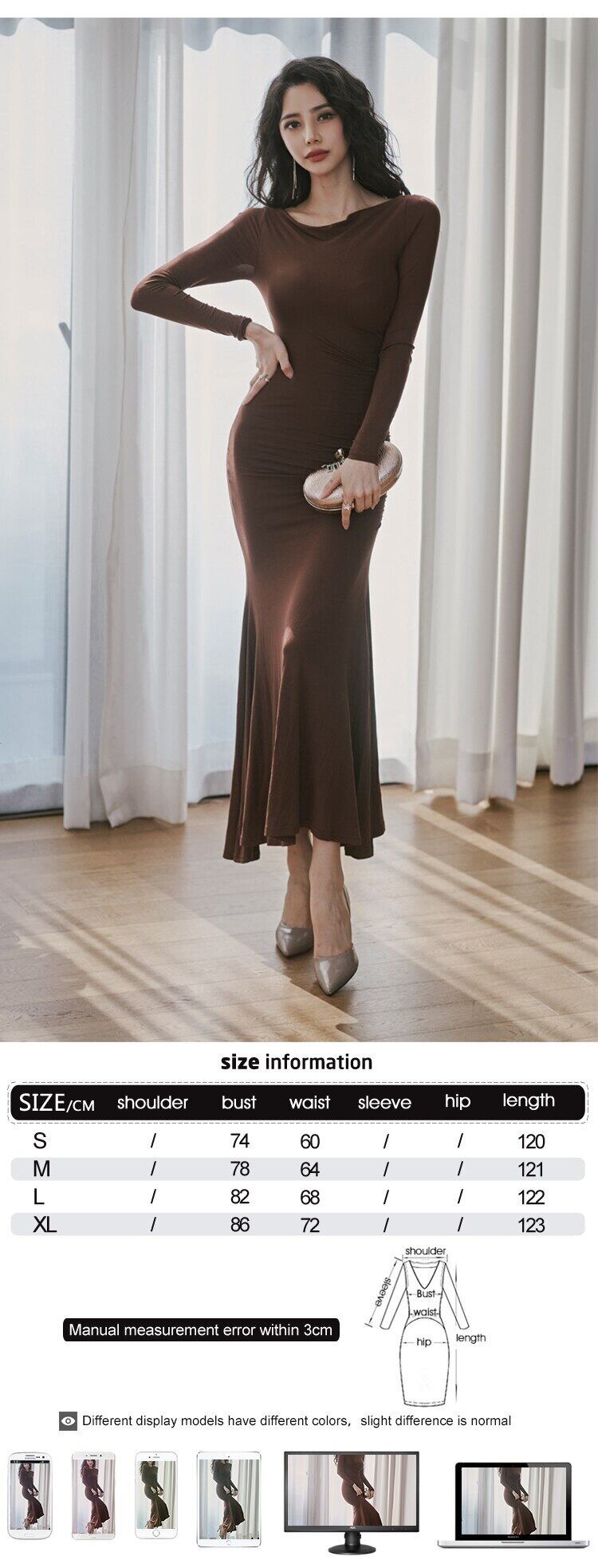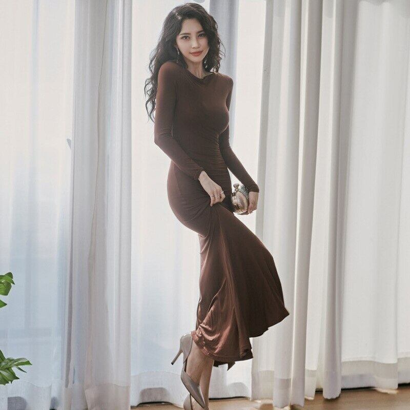 新着comtableファッションmalマーメイドドレスソリッド弾性ワークスタイルベーシックかわいいワイルドトランペットドレス エラスティック 伸縮 大人ガーリー スウィート キュート カジュアル ソリッドカラー