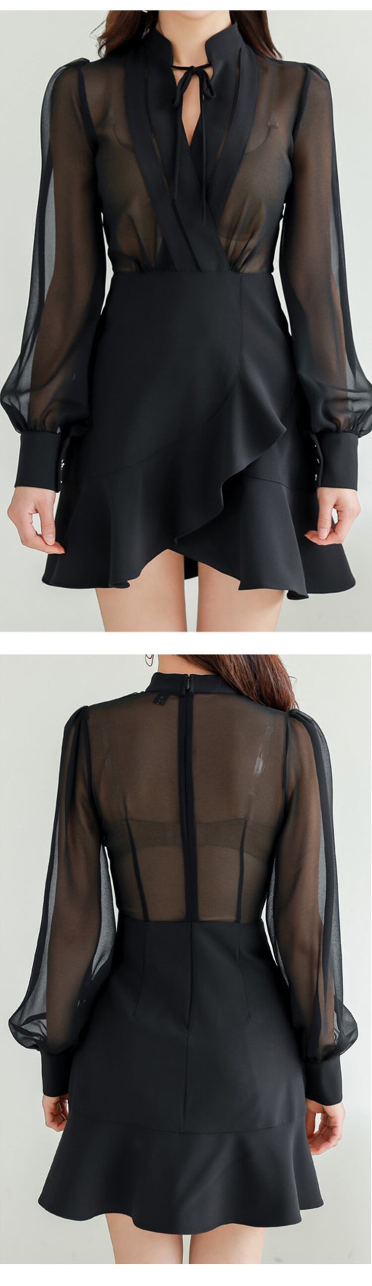 新着ファッション黒視点セクシーマーメイドドレス気質エレガントヴィンテージミニトランペットドレス ブラック ビンテージ