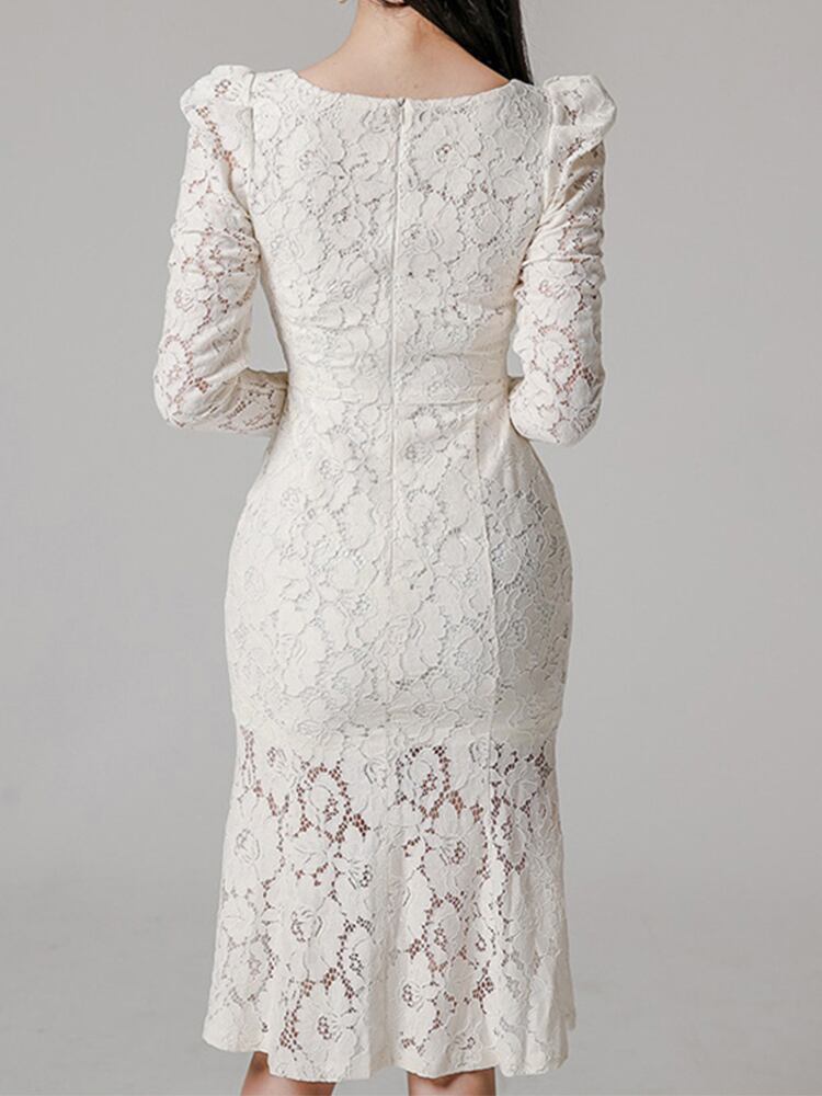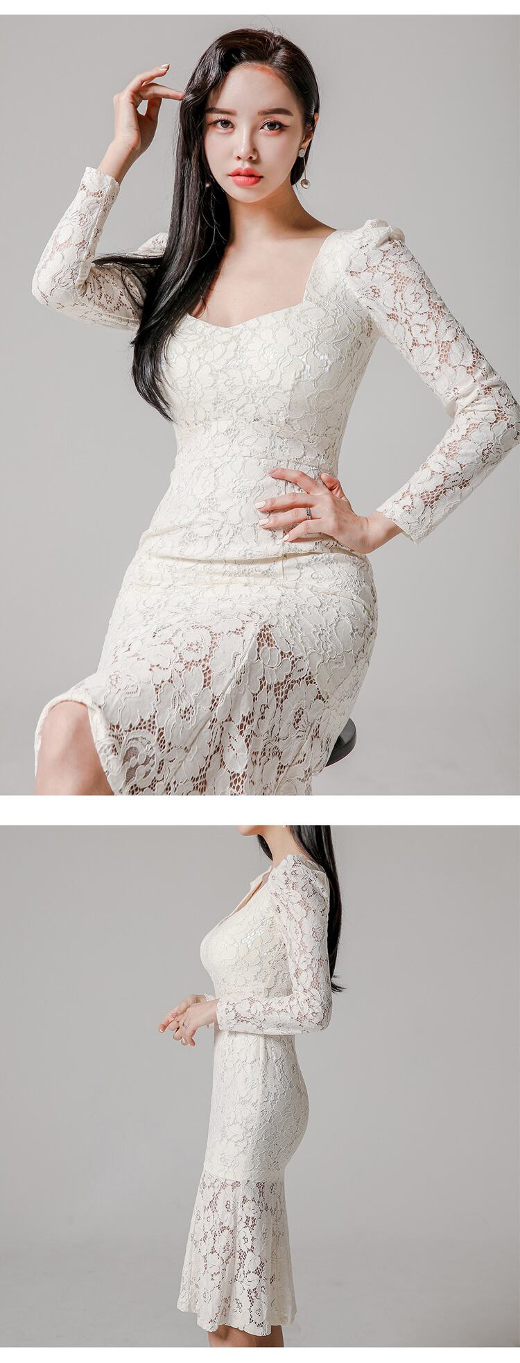 新着ファッション韓国春ミディパーティードレス OL プロ気質新鮮白フリルレースセクシーマーメイドドレス ホワイト スプリング 春物