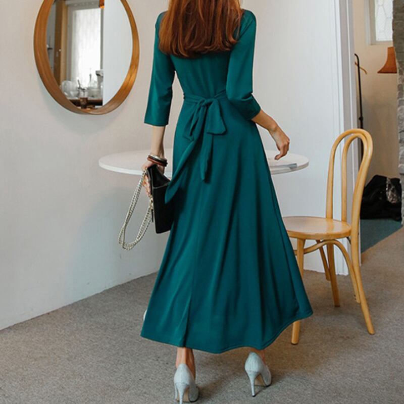 新着comtableファッションvネックパーティーmalドレス気質無地ワイルドベーシックかわいい弓ホリデーロングaラインドレス リボン 大人ガーリー スウィート キュート カジュアル ソリッドカラー