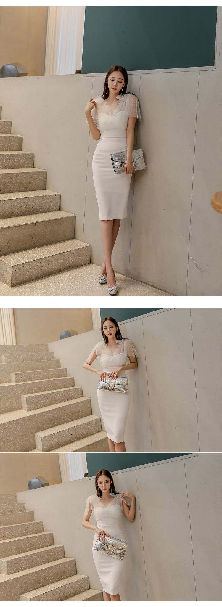 新着ファッション パーティー ボディコン ドレスエレガント夏セクシー視点気質オフィス レディ シンプル白ペンシル ドレス ホワイト サマー 夏物 会社 学校 通勤や通学にも