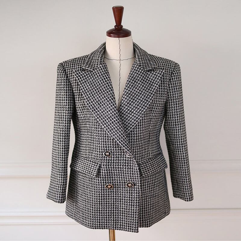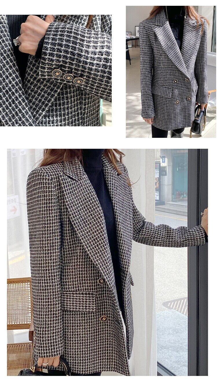 新着韓国ファッション冬 OL プロフェッショナル ジャケット気質ダブル ブレスト ルーズ ジャケット千鳥格子厚いコート ウィンター 冬物