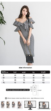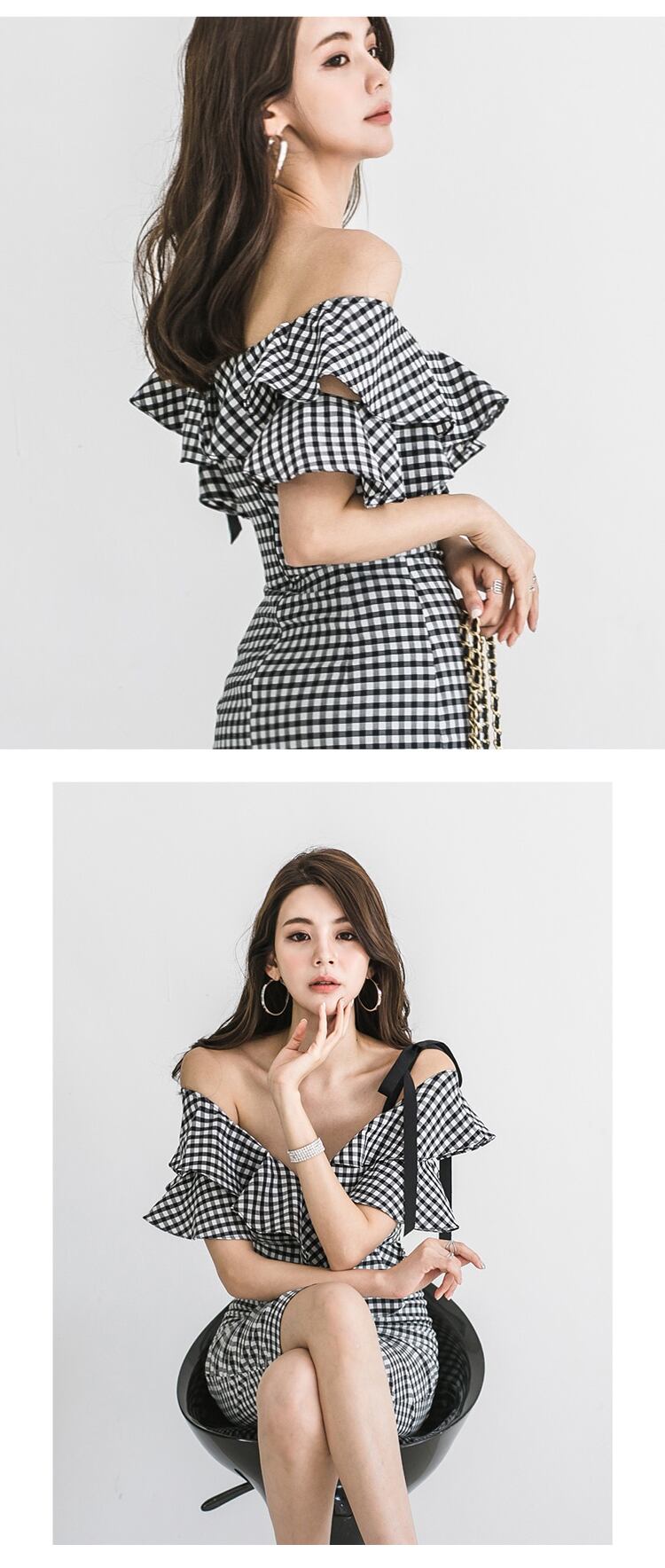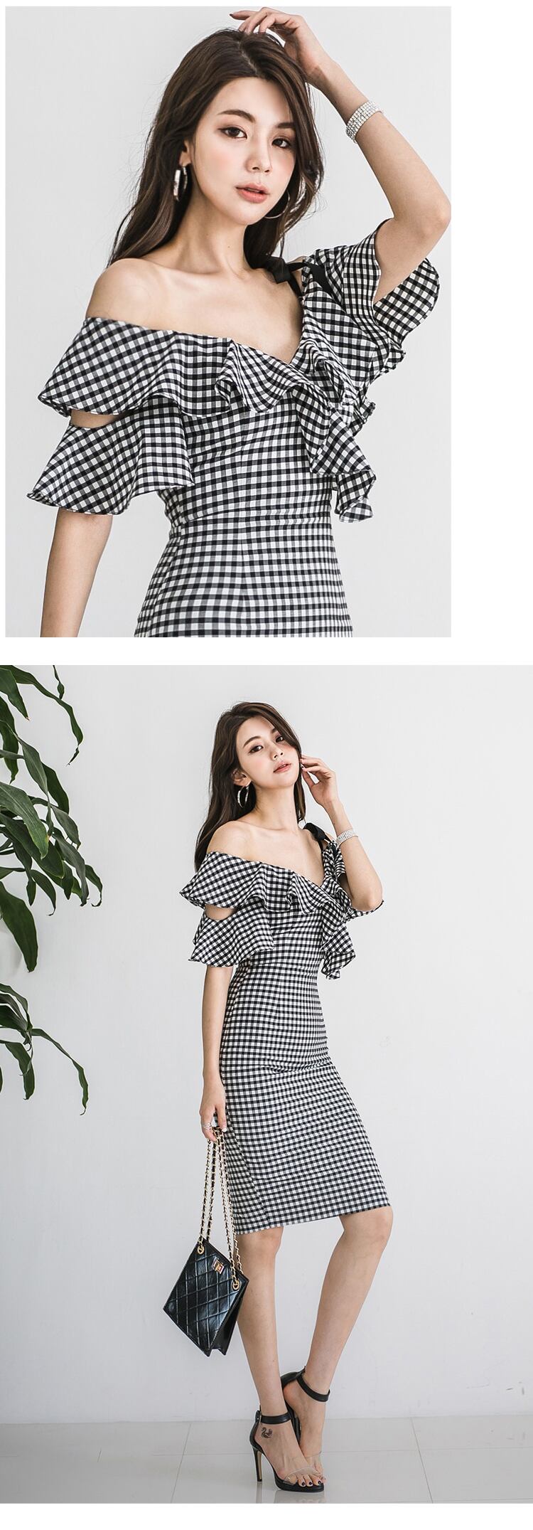 イブニングドレスシック格子縞セクシーオフショルダー中空ミディパーティークラブローブ Vestidos