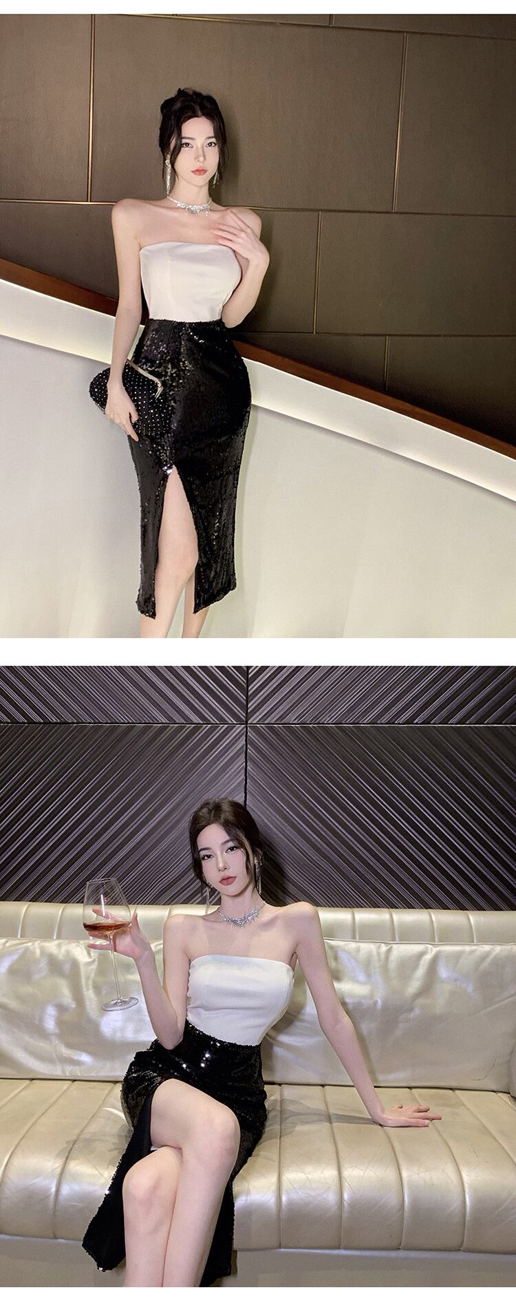 夏イブニングドレスグリッタースパンコールセクシー胸ラッピングスリムミディドレスパーティーガウン Vestidos フィエスタ サマー 夏物