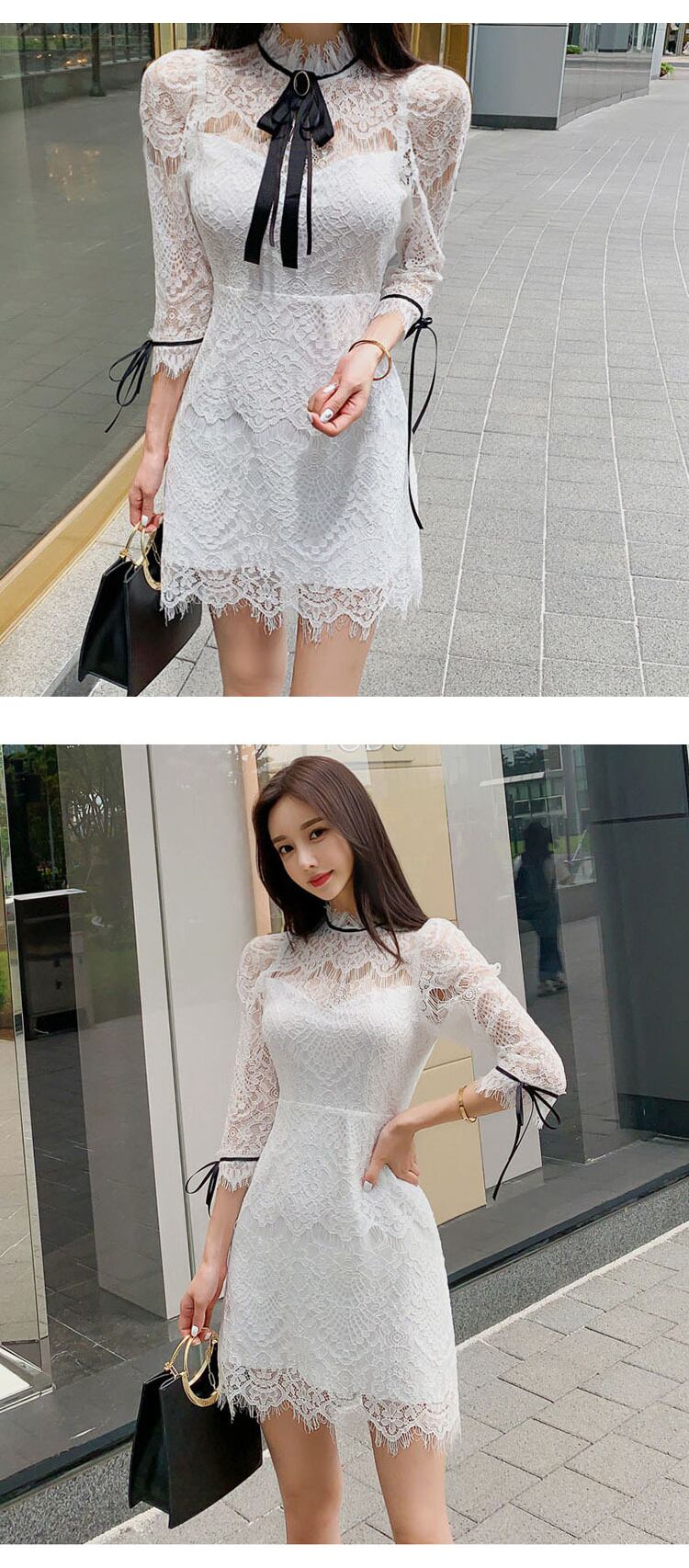 新着ファッションレースドレスエレガント秋セクシースタンドネック透視気質オフィスレディソリッドスリムaラインドレス オータム 秋物 ソリッドカラー 会社 学校 通勤や通学にも