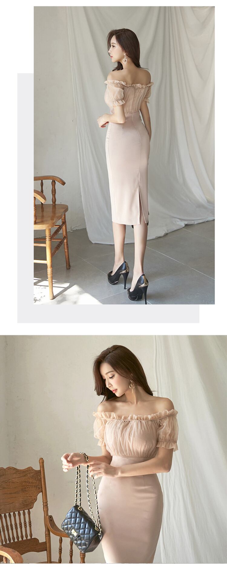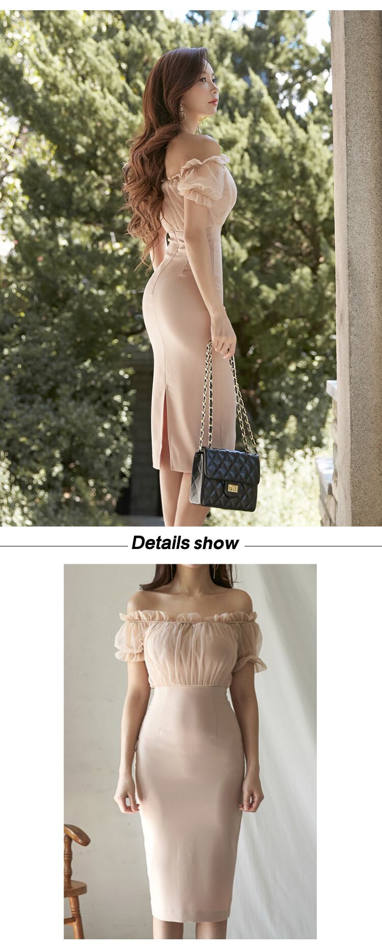 夏ドレスレディピンクセクシーオフショルダー背中開いたメッシュボディコンスリムスリットミディパーティークラブビーチ Vestidos サマー 夏物