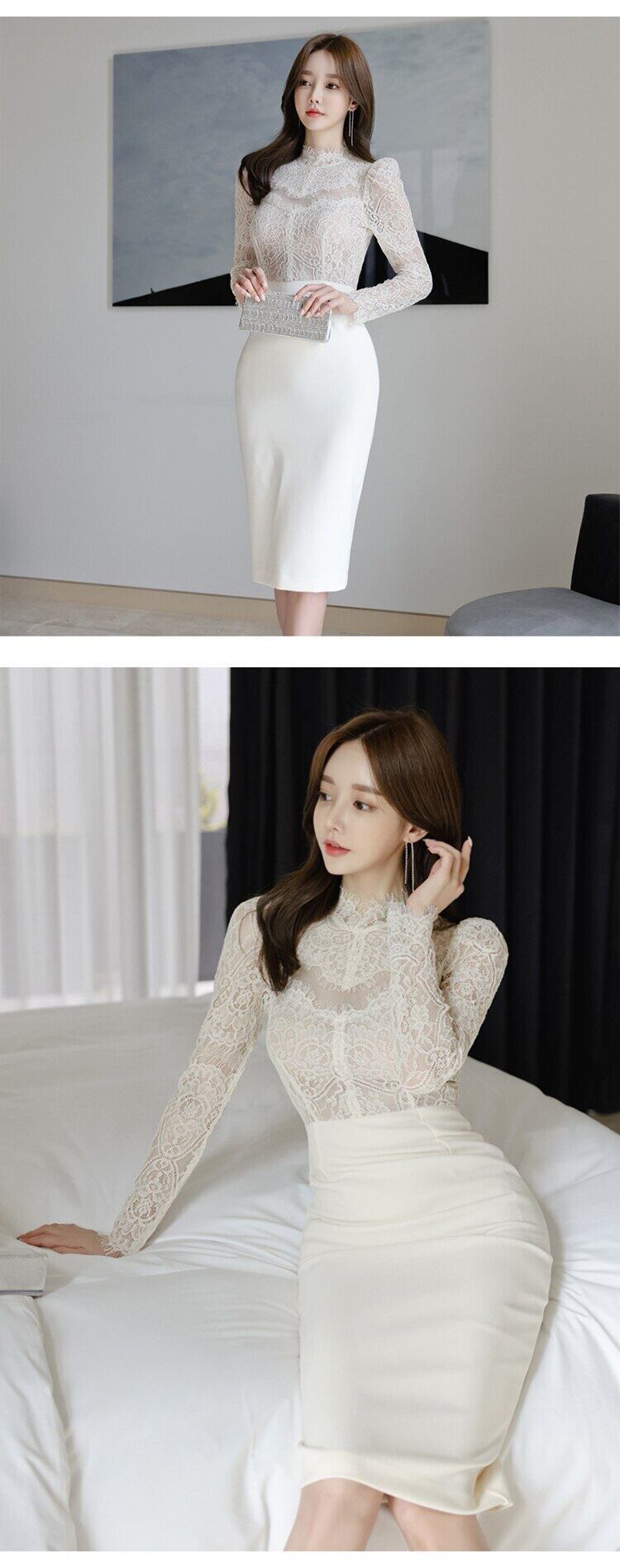 新着ファッション春パーティー ナイト クラブ ドレス OL 気質セクシー視点スリム白新鮮スリム ミディ ペンシル ドレス ホワイト スプリング 春物