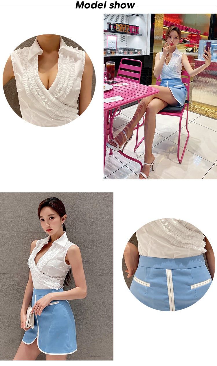 新着ファッションセット夏セクシーワークスタイル新鮮トレンドミニスカートと非対称白シャツ 2 点セット ホワイト サマー 夏物