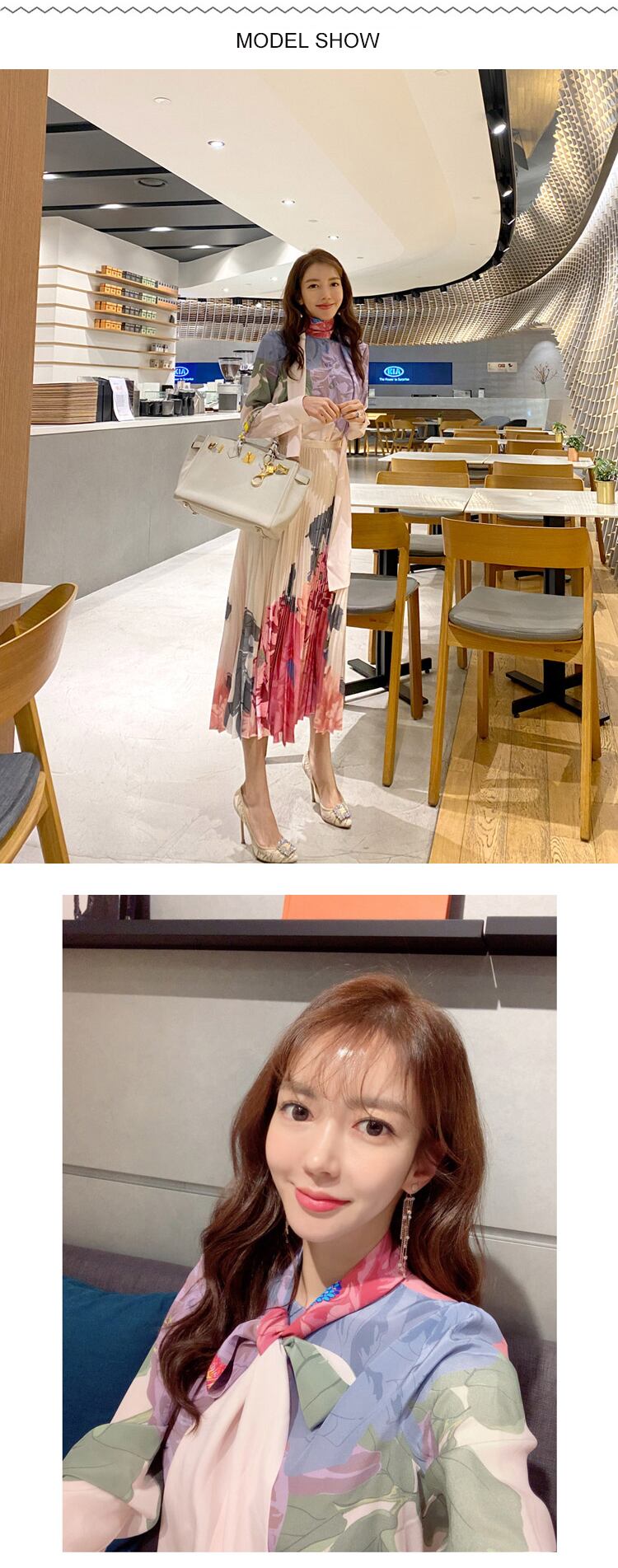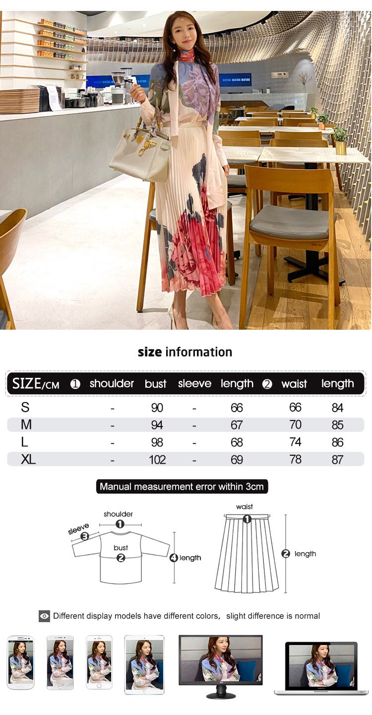 新着ファッションセットプリントルーズシャツとロングaラインスカートオフィスレディシンプルトレンドエレガント2点セット 会社 学校 通勤や通学にも