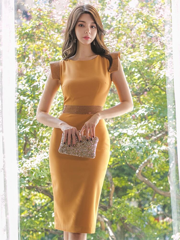 新着 OL マルペンシルドレス人格スリム気質快適ノースリーブパーティードレス