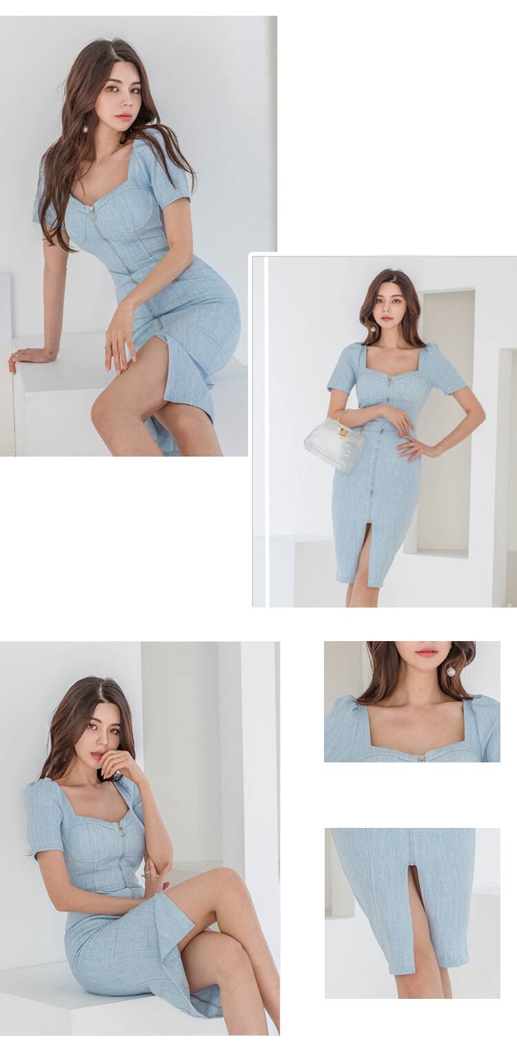 新着ファッションパーティードレスエレガント夏 v ネックヴィンテージパフスリーブカラーステッチ気質ミニボディコンドレス サマー 夏物 Vネック ビンテージ
