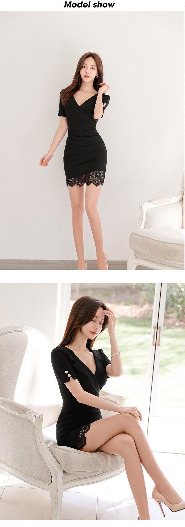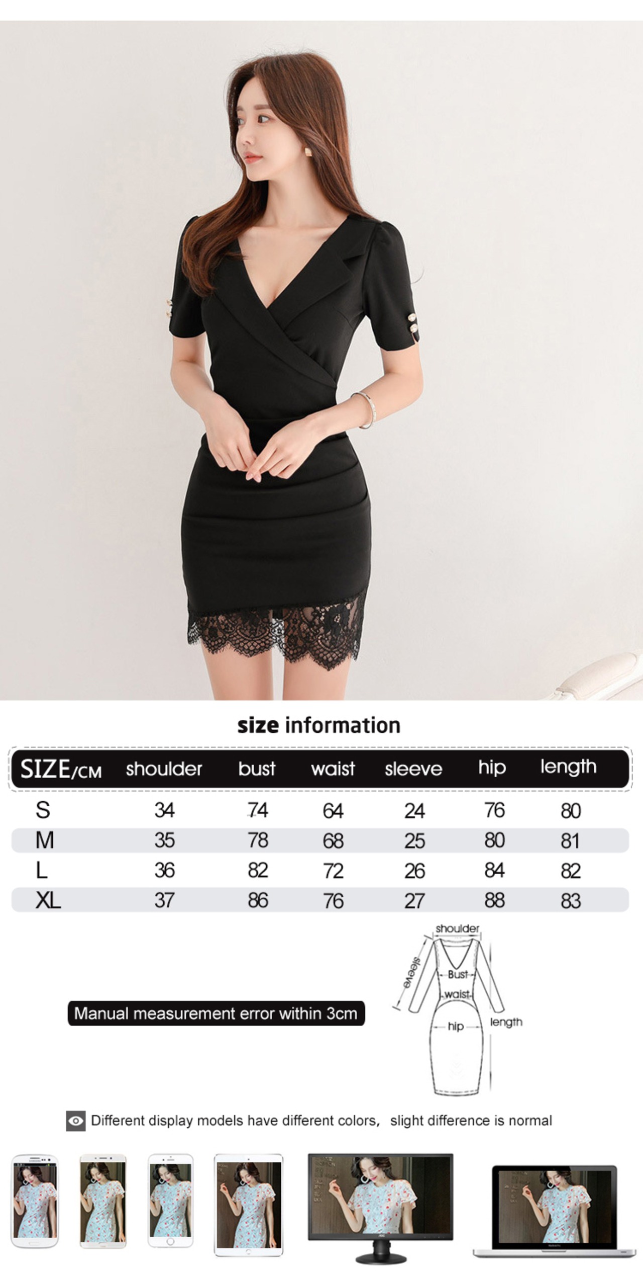 新着ファッションミニドレスエレガント夏オフィスレディ v ネックレース気質シンプル黒スリムミニペンシルドレス ブラック サマー 夏物 Vネック 会社 学校 通勤や通学にも