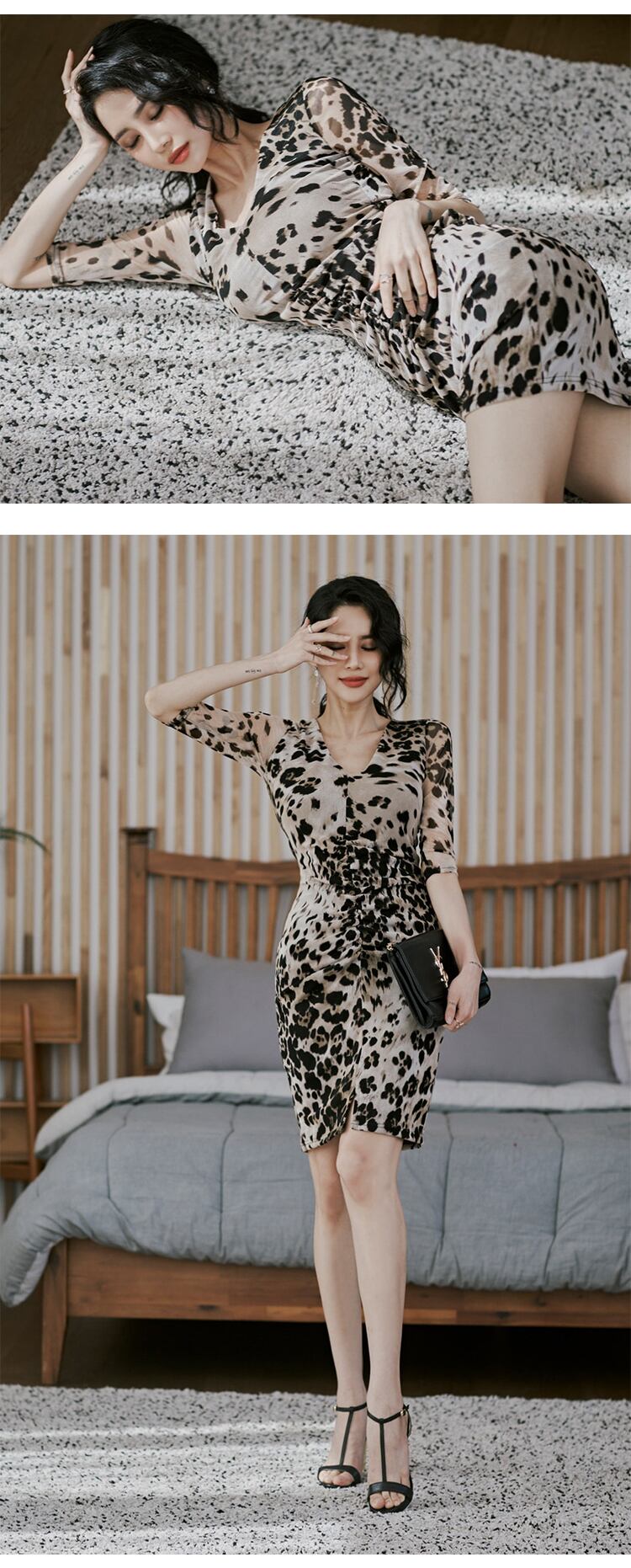 新着ファッション comtable v ネックセクシー mal ドレスヒョウかわいいエレガントスリムミニペンシルドレス 大人ガーリー スウィート キュート カジュアル Vネック