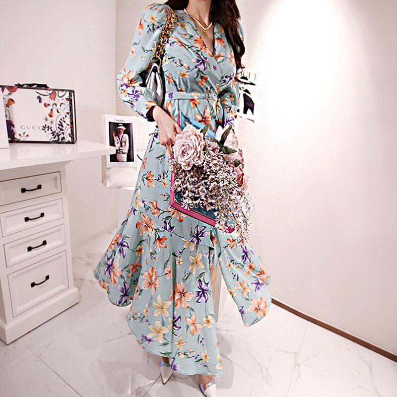 新着ファッションプリントロングパーティー mal ドレス気質的休日ビーチかわいい野生 comtable a ラインドレス 大人ガーリー スウィート キュート カジュアル Aライン