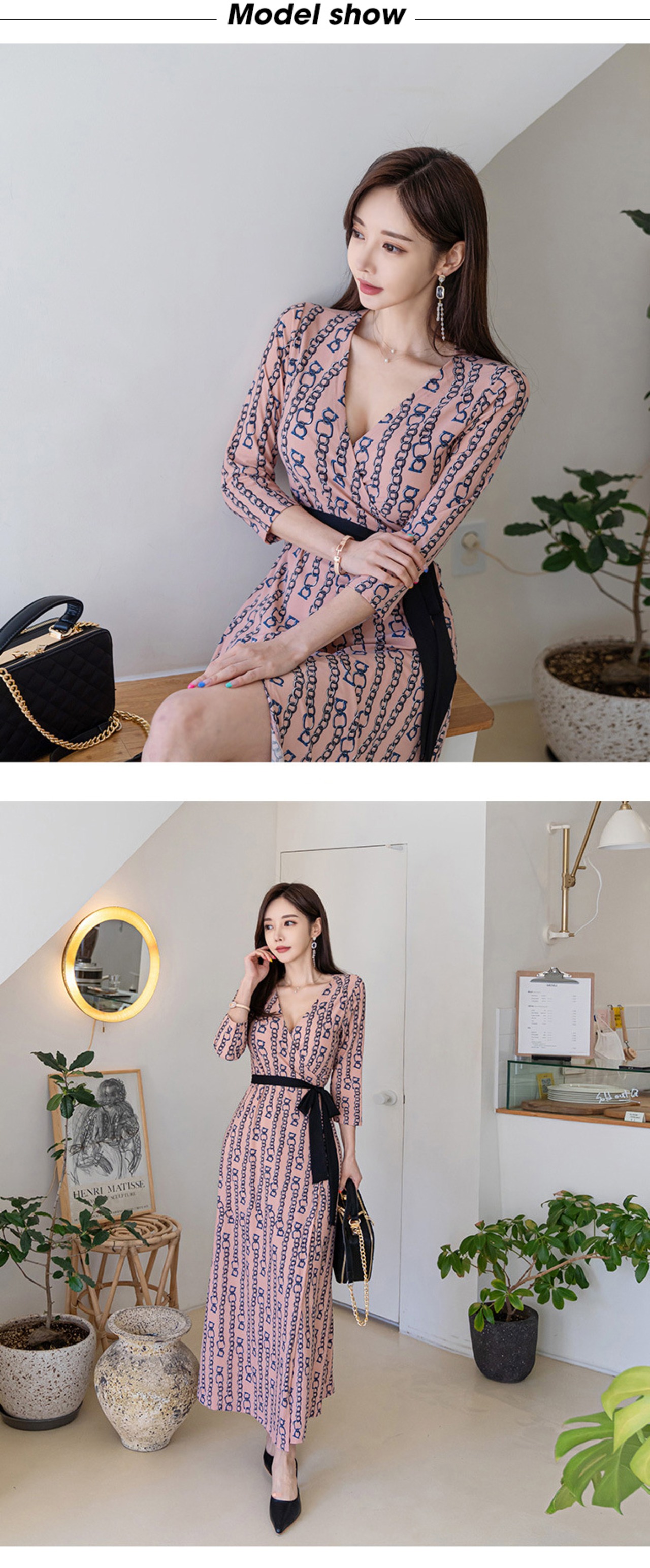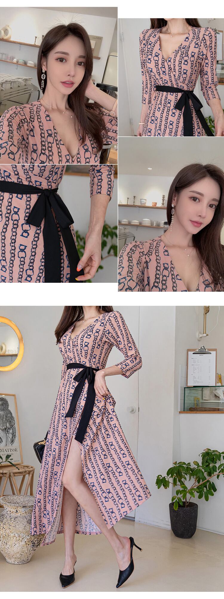 新着ファッションビーチドレスエレガント秋シフォン V ネック長袖プリント気質甘いロング A ラインドレス 大人ガーリー スウィート キュート カジュアル オータム 秋物 Vネック Aライン
