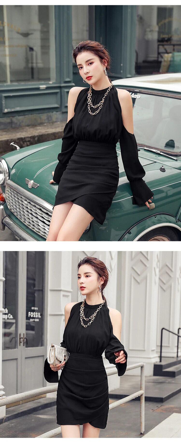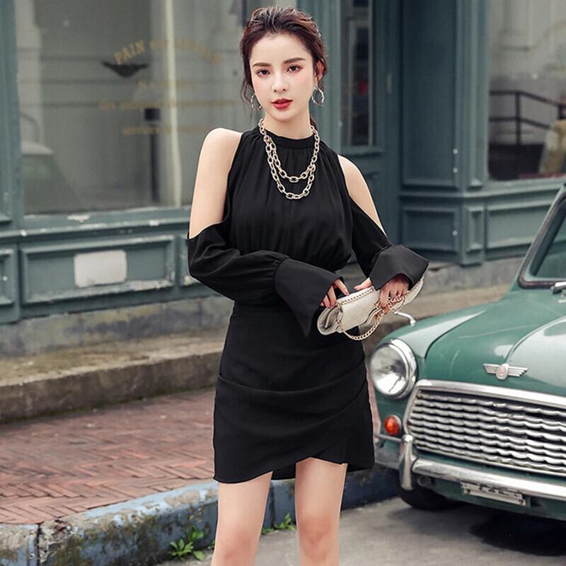 新着ファッションオフィスレディ comtable mal ドレス気質的オフショルダーエレガントセクシー黒ミニ a ラインドレス ブラック Aライン 会社 学校 通勤や通学にも
