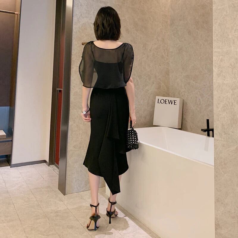 新着ファッションセクシーボビコンドレスエレガント夏ヴィンテージvネックシフォン視点気質フリルaラインドレス ラッフル サマー 夏物 ビンテージ