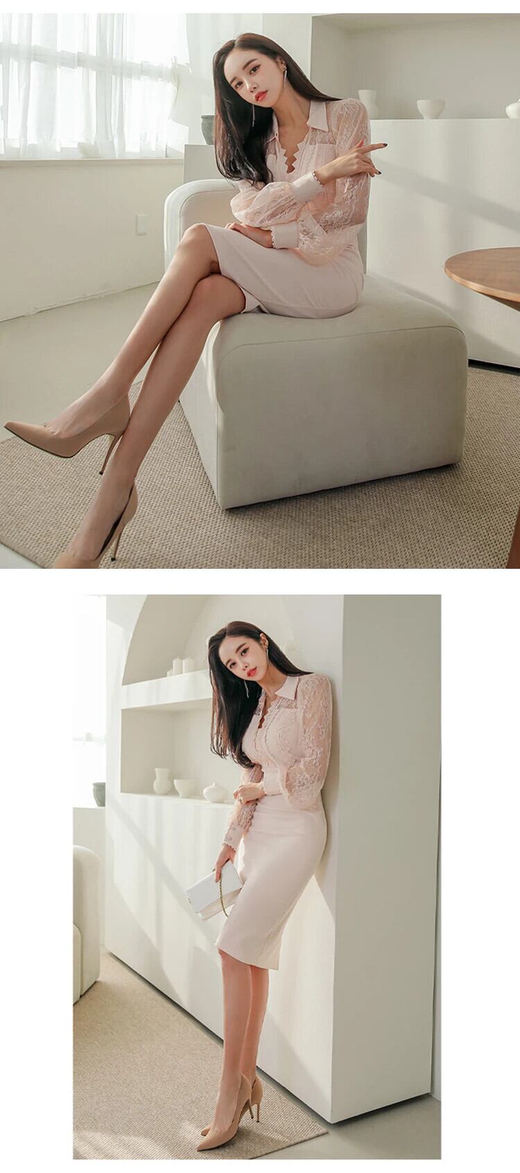 新着ファッション春パーティードレス OL 気質セクシー視点プロフェッショナルレースステッチスリムミディペンシルドレス スプリング 春物