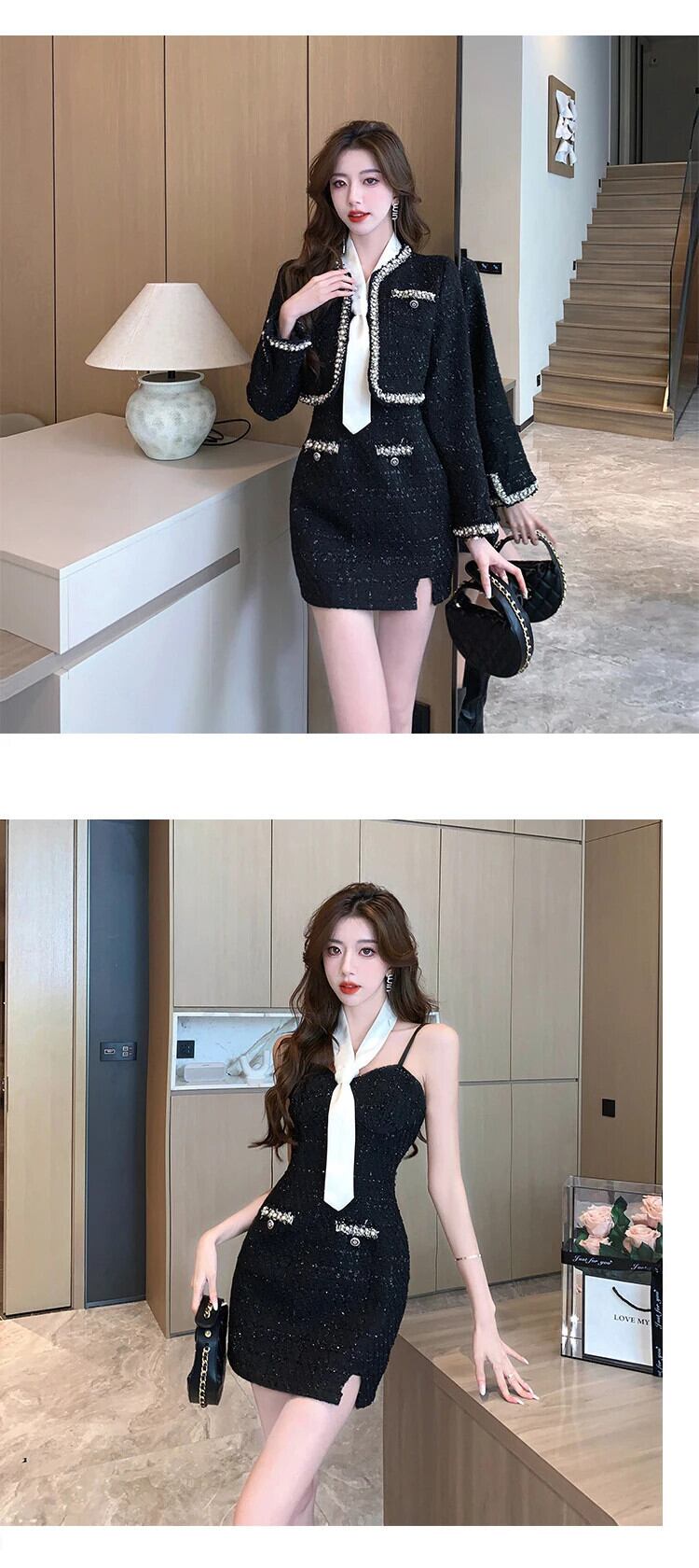 黒 2 ピース衣装コートジャケット生き抜くとセクシーストラップスリムミニドレスショートセットストリート ブラック