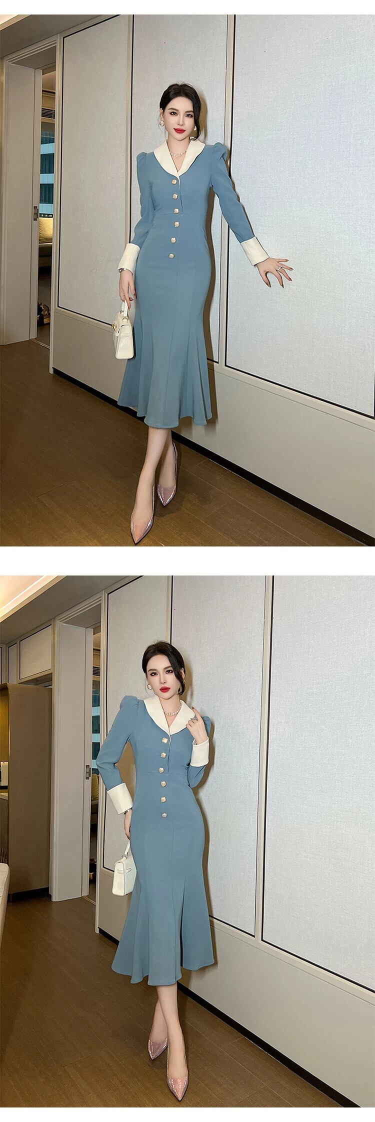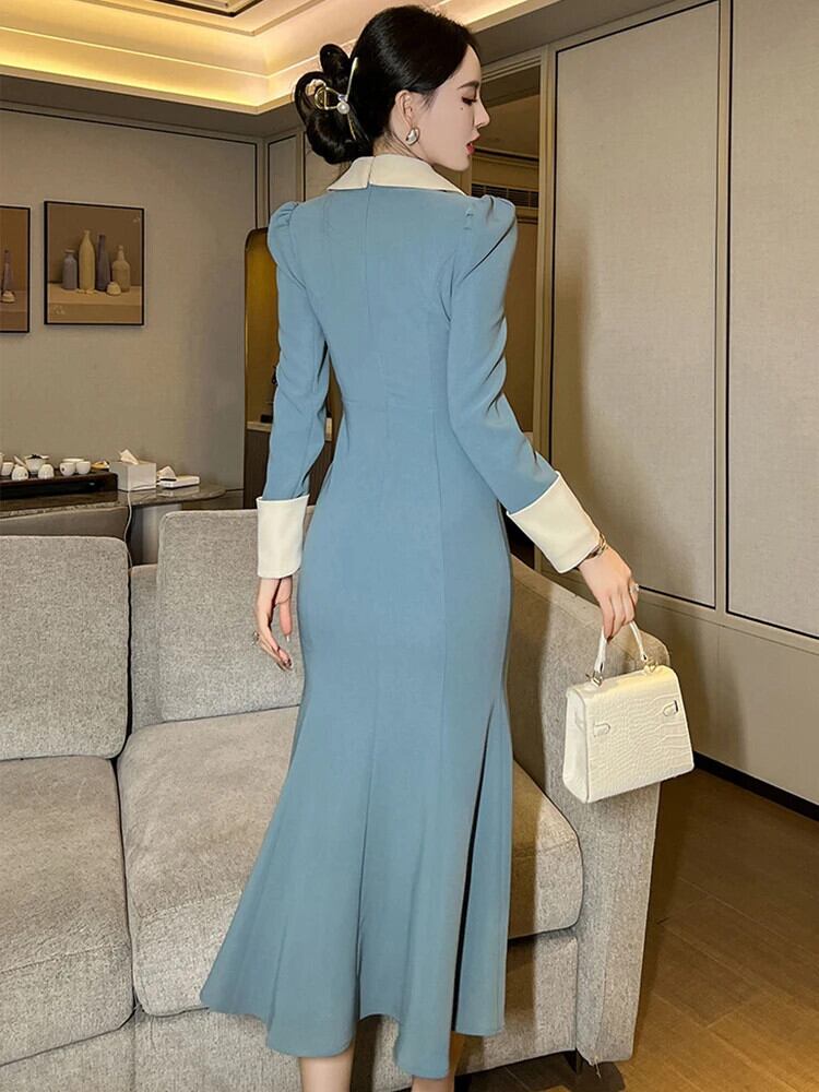 Lady Sweet ワークスタイル mal 機会フィッシュテールドレス通勤オフィスラペルスリムローブ Vestidos 大人ガーリー スウィート キュート カジュアル 会社 学校 通勤や通学にも