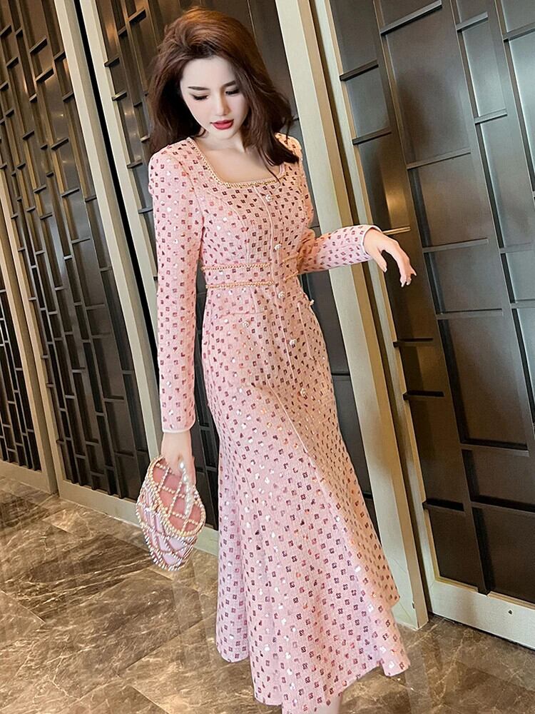 mal 機会高級スパンコールマーメイドドレスオフィス甘いスクエアカラーラップヒップパーティーローブ Vestidos 大人ガーリー スウィート キュート カジュアル スクウェア 会社 学校 通勤や通学にも