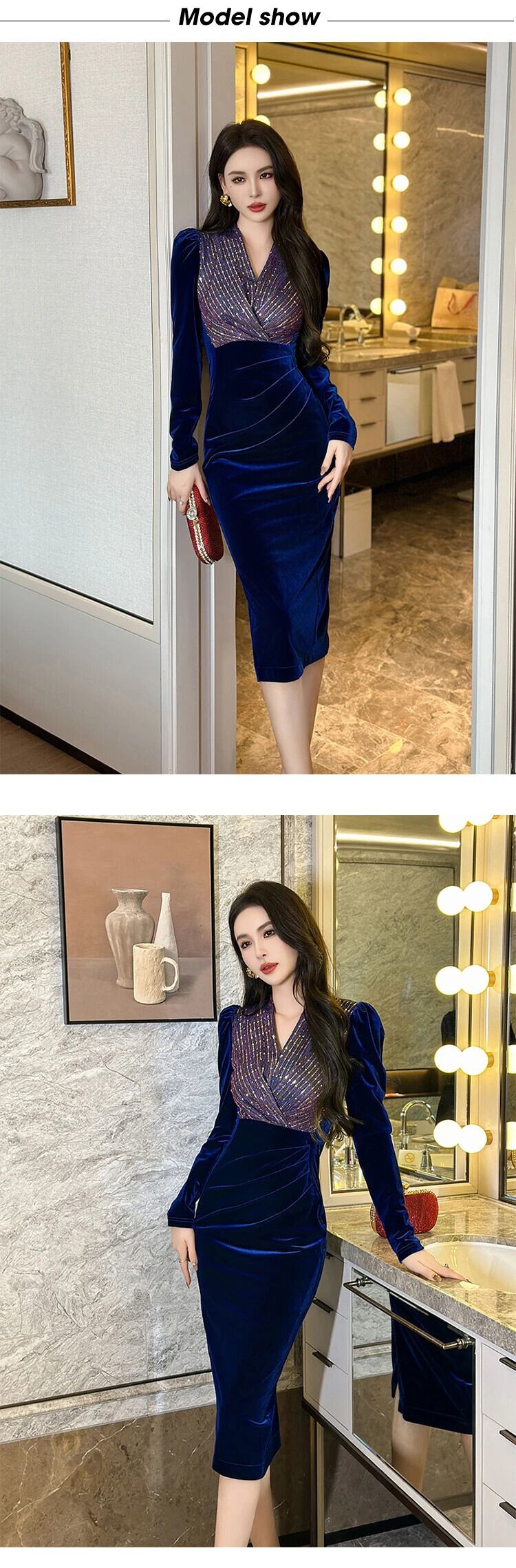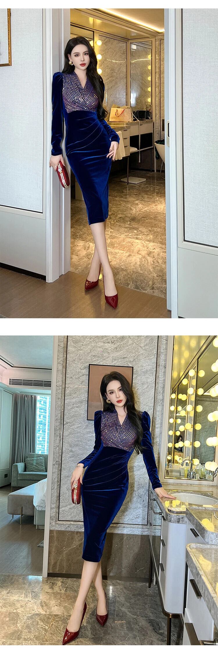 mal 機会ベルベットスパンコールペンシルドレスオフィス V ネックひだスリムパーティー Vestidos Vネック 会社 学校 通勤や通学にも