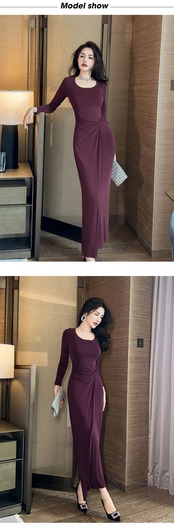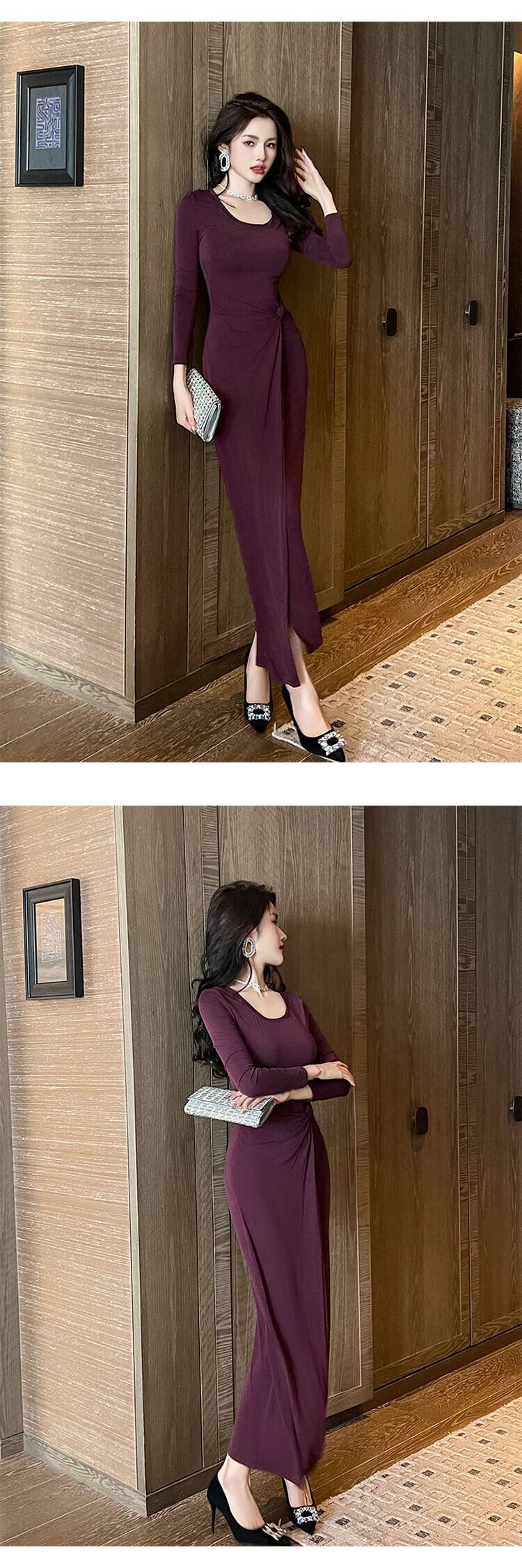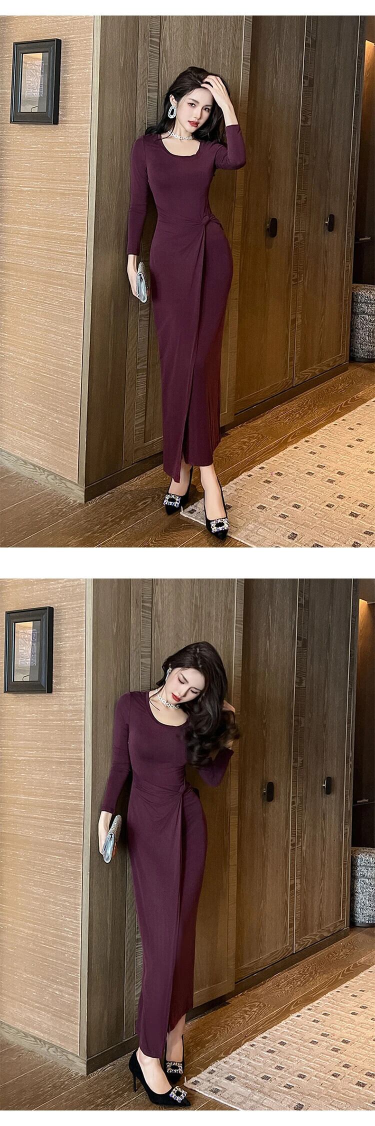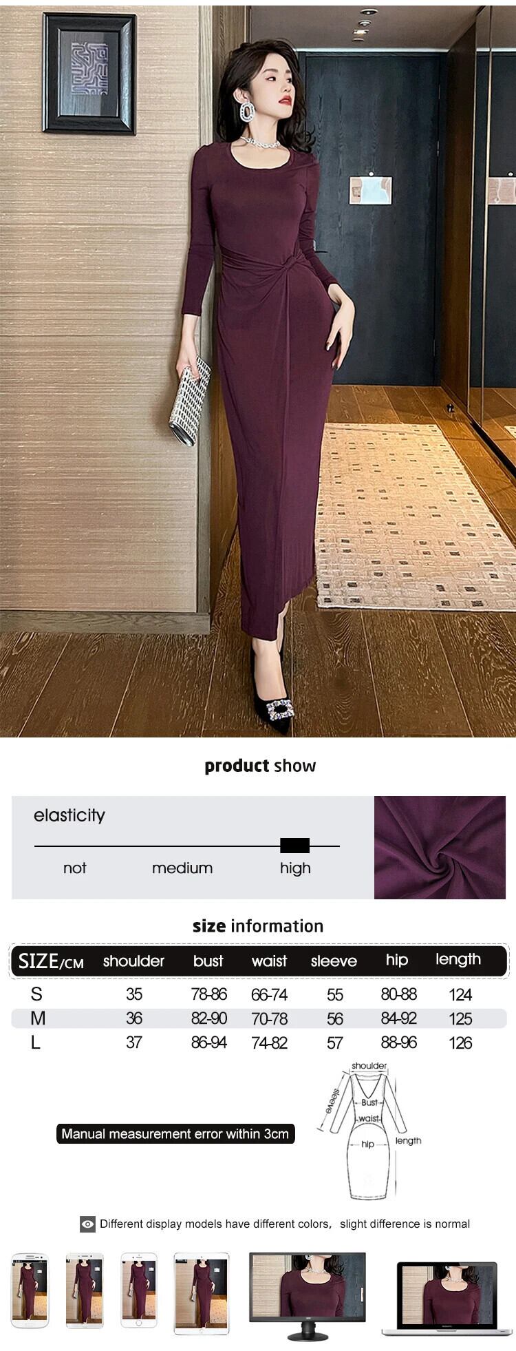 基本的ストレッチロングドレスシンプル長袖ボディコンマキシドレス Vestidos ローブ