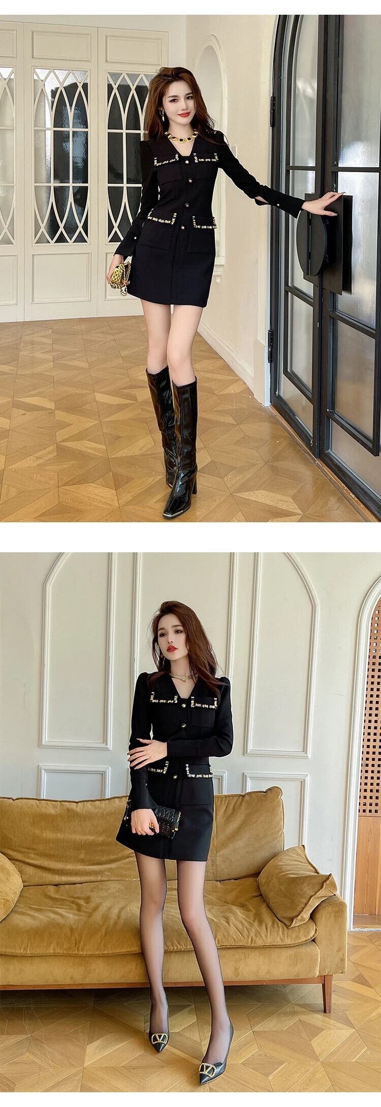 レディブラックワークスタイル mal ショートドレス高級オフィス通勤 V ネックスリム Vestidos Vネック 会社 学校 通勤や通学にも