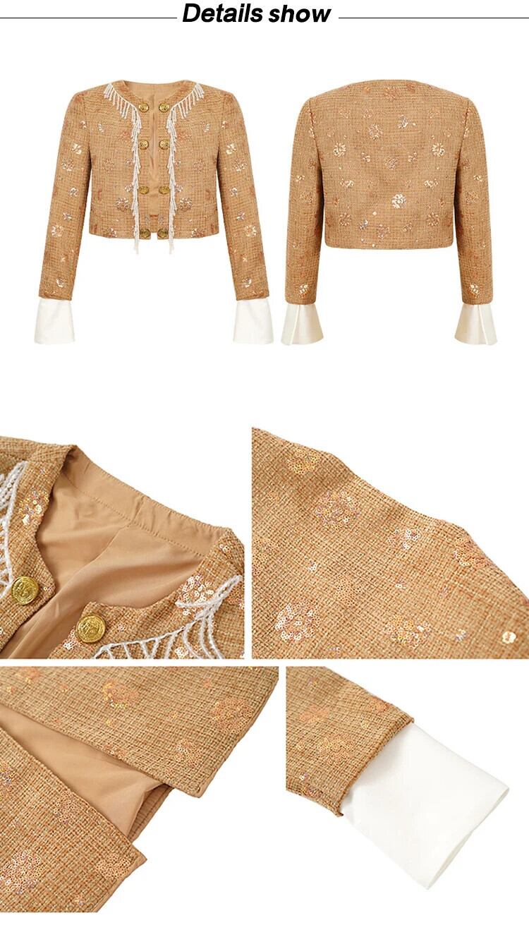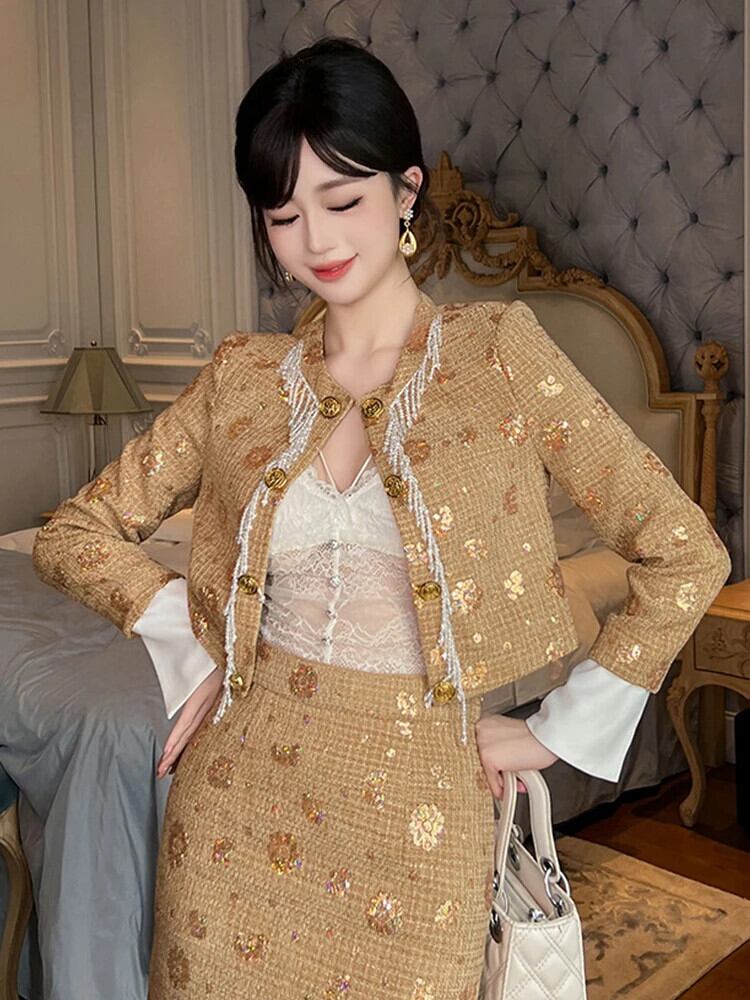 グリッター光沢あるスパンコール mal ショートジャケットシック高級 O ネックカーディガンコートトップス生き抜く Oネック