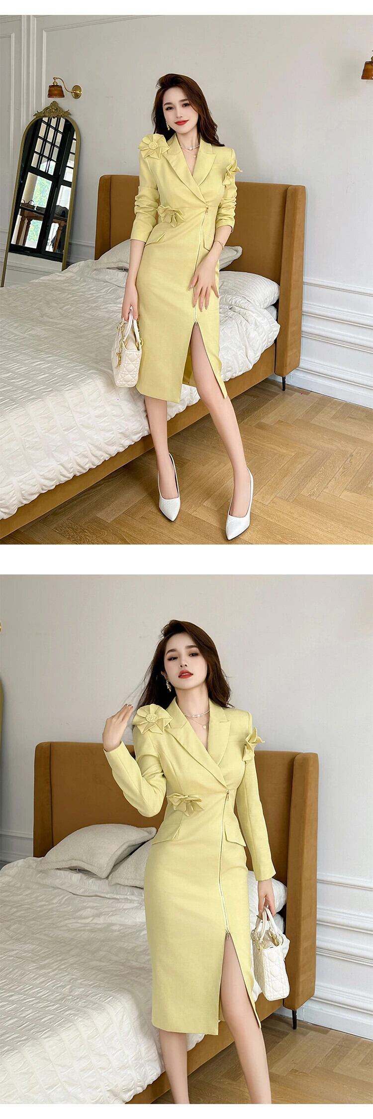 ブレザーワークスタイル mal ペンシルドレスシックオフィス通勤長袖スリム Vestido ロング ソリッドカラー 会社 学校 通勤や通学にも