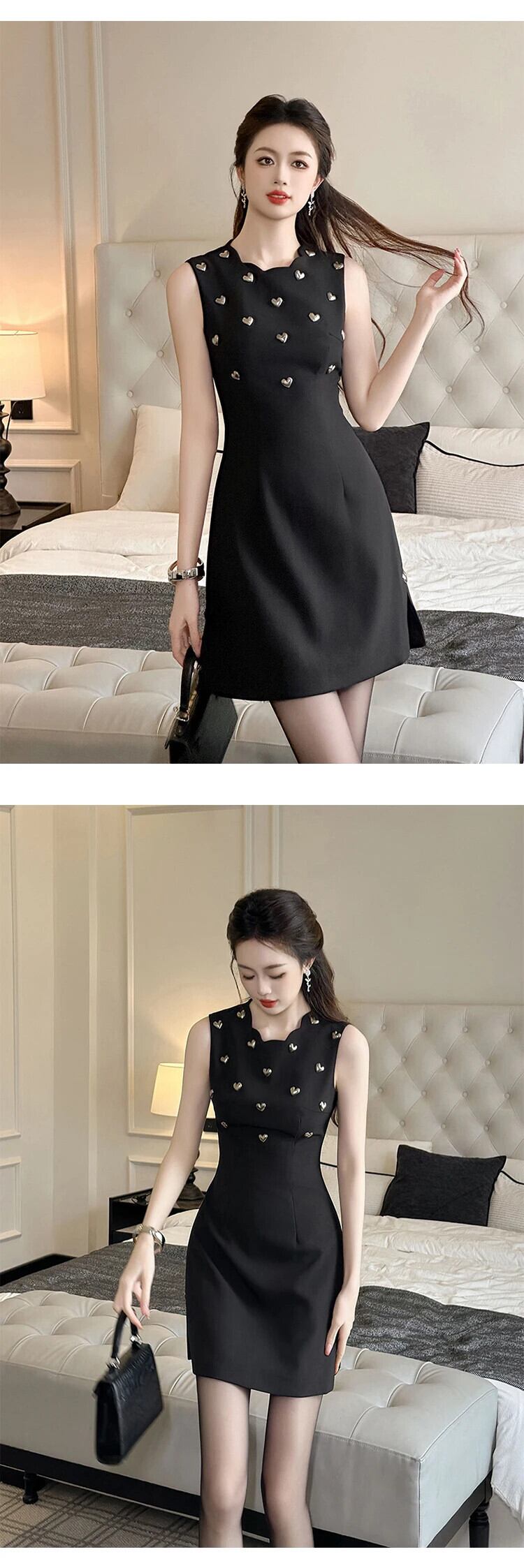 レディスウィートブラックイブニングドレスシックセクシーノースリーブスリムショートパーティークラブ誕生日 Vestidos 大人ガーリー キュート カジュアル