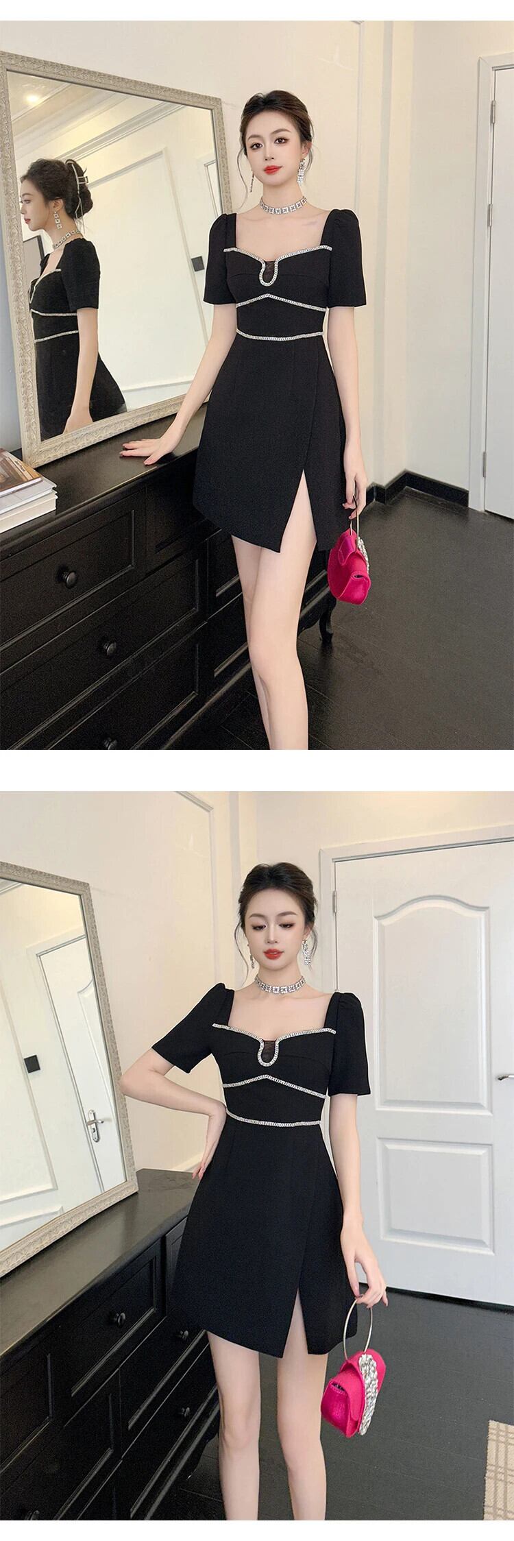 高級イブニングドレスシックセクシー半袖スリムスリットショートパーティークラブ誕生日 Vestidos ハーフスリーブ