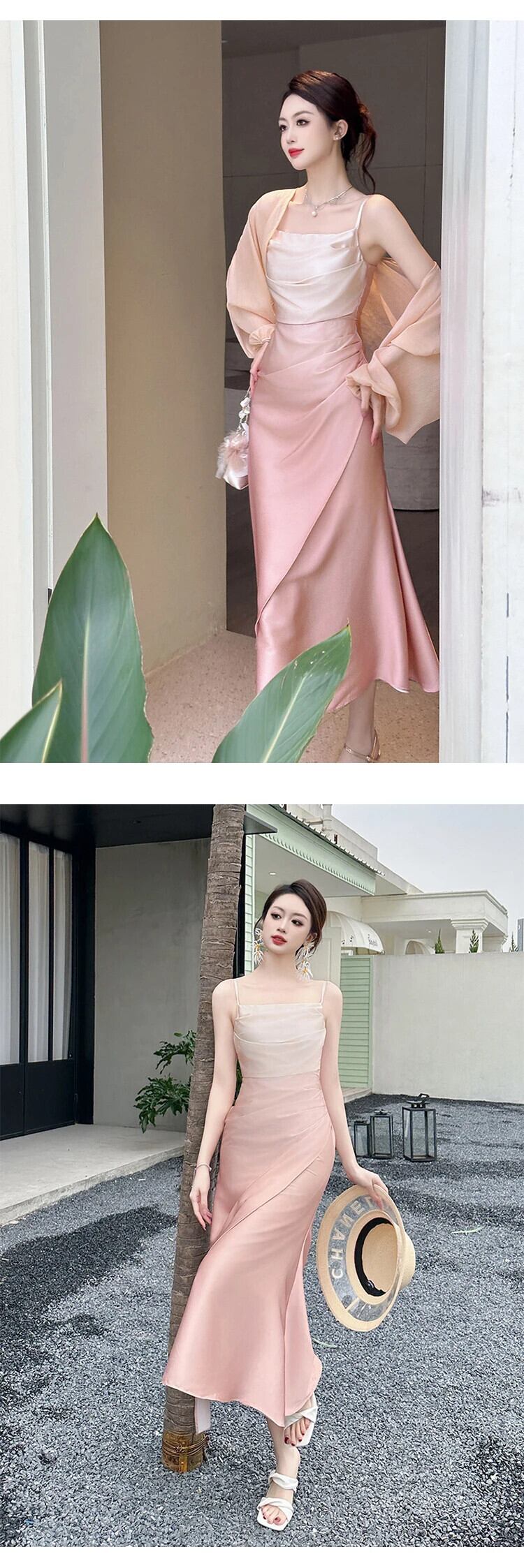 夏ビーチホリデーイブニングドレススウィートシックセクシーストラップ折り目スリムマキシパーティー誕生日 Vestidos フィエスタローブ 大人ガーリー キュート カジュアル サマー 夏物