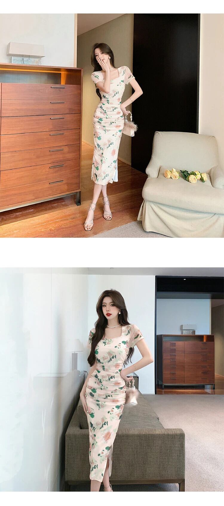 夏甘いメッシュ花柄ロングドレス半袖スキニースリットビーチ Vestidos ローブストレッチ自由奔放生きる ショート ハーフスリーブ 大人ガーリー スウィート キュート カジュアル サマー 夏物
