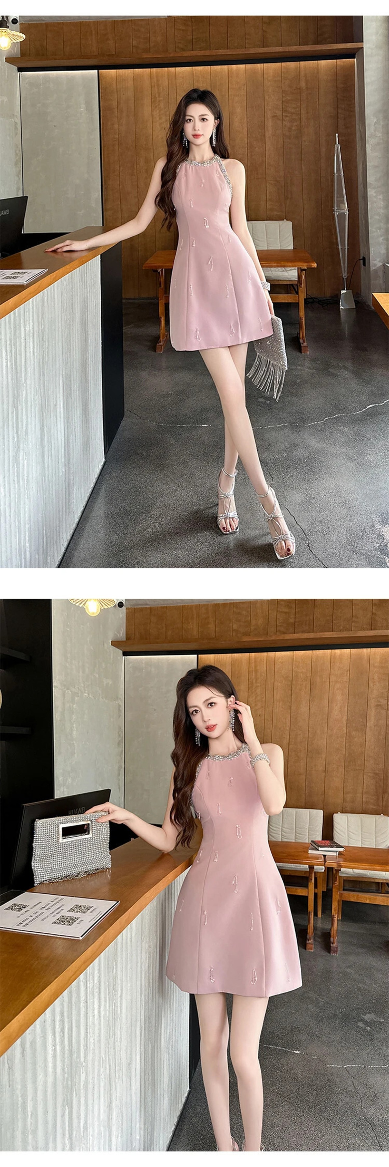 夏 Y2K レディピンク甘いイブニングドレスシック高級セクシーノースリーブスリムショートパーティー誕生日 Vestido 大人ガーリー スウィート キュート カジュアル サマー 夏物