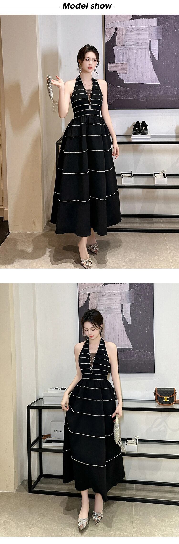 黒人休暇イブニングロングドレス高級セクシーホルター背中開いた A ラインパーティードレス誕生日 Vestido ローブ ブラック Aライン