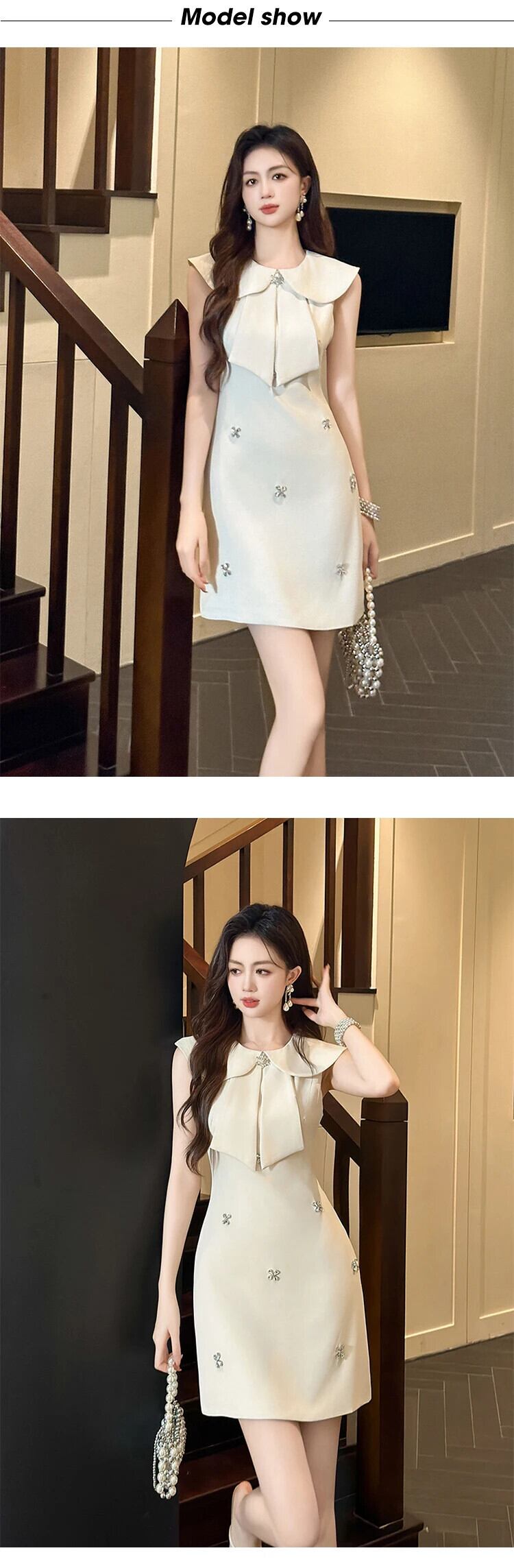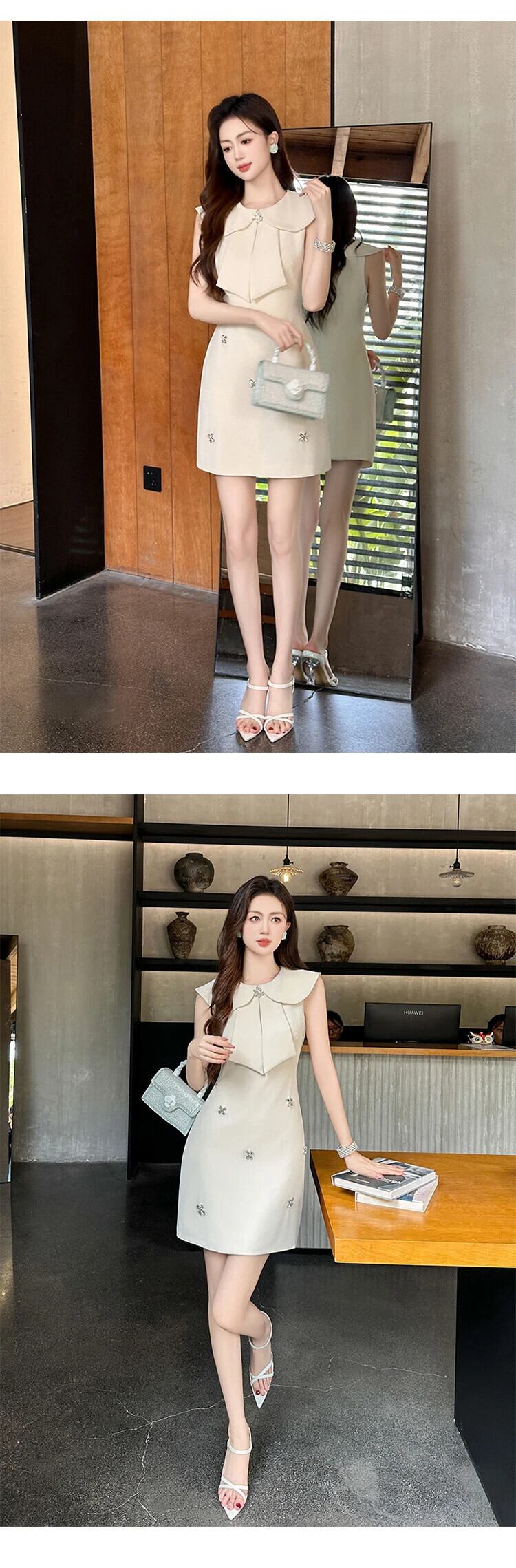 夏甘いイブニングドレスシック高級セクシーピーターパン襟スリムショートパーティー誕生日 Vestidos 大人ガーリー スウィート キュート カジュアル サマー 夏物 ソリッドカラー