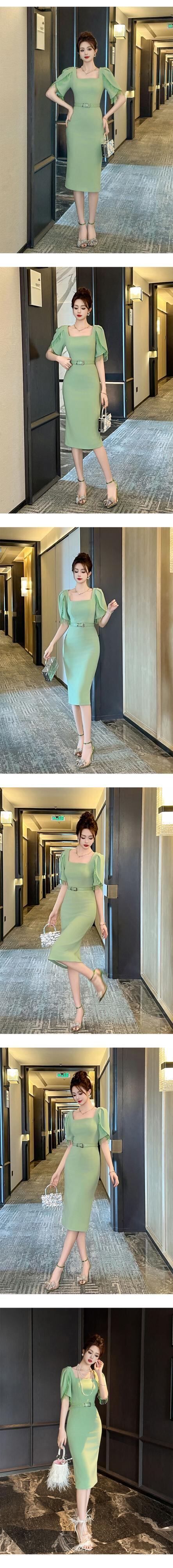 夏高級ワークスタイルペンシルドレスシックパフスリーブスリムミディパーティー誕生日 Vestidos フィエスタ サマー 夏物