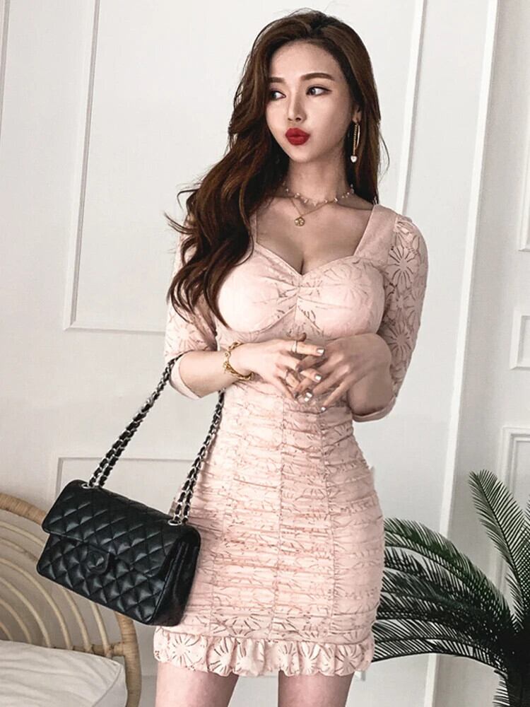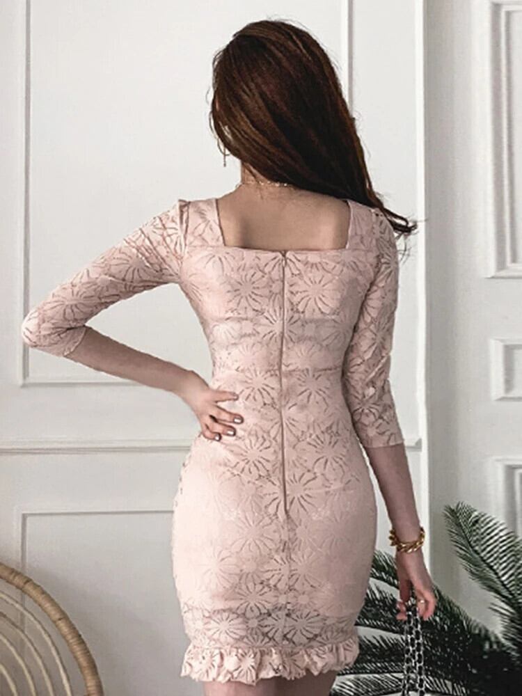 Y2K レースショートドレス甘いセクシースクエアカラースリムひだフリルパーティークラブ Vestidos 大人ガーリー スウィート キュート カジュアル スクウェア