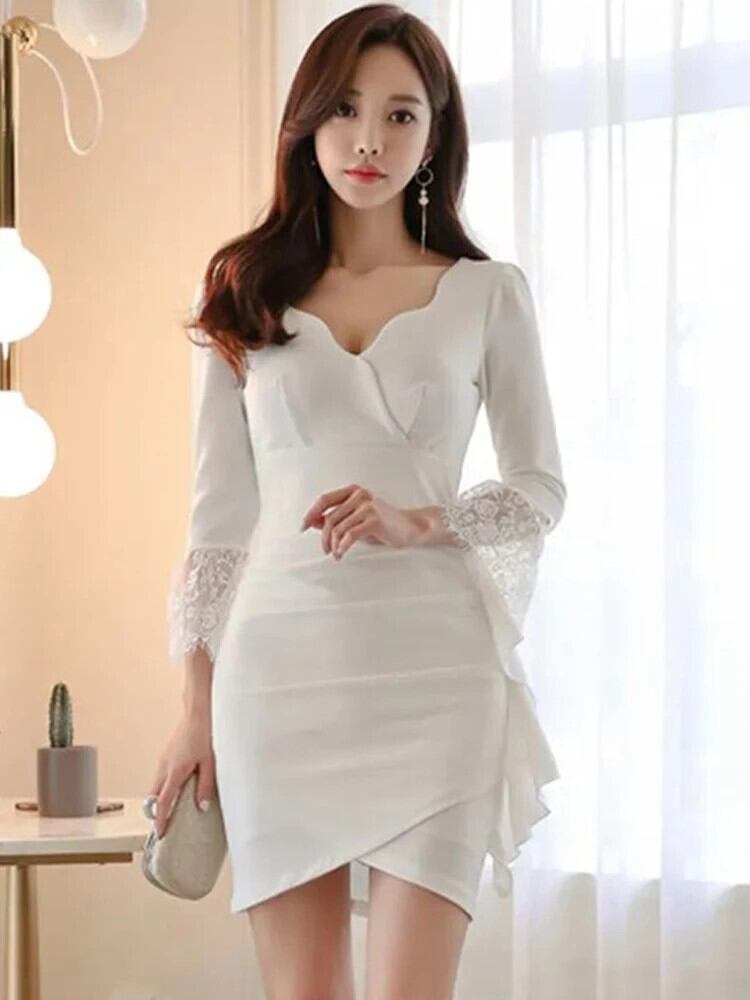 ワークスタイル mal ホワイト不規則ドレス甘いフリルセクシーフレアスリーブスリムひだショートパーティー Vestido 大人ガーリー スウィート キュート カジュアル